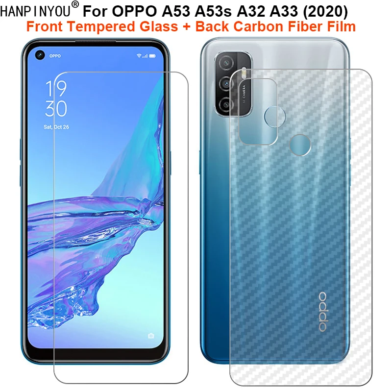 Для OPPO A53 A53s A32 A33 2020 6,5 "1 комплект = мягкая задняя пленка из углеродного волокна + Премиум Закаленное стекло для переднего экрана