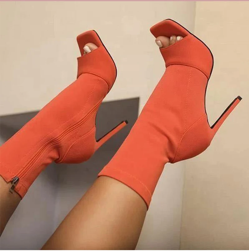 Женские ботинки, пикантные ботильоны с открытым носком, женские модные женские туфли на высоком каблуке на молнии, большой размер 43, женские осенние туфли, женская обувь, 2020