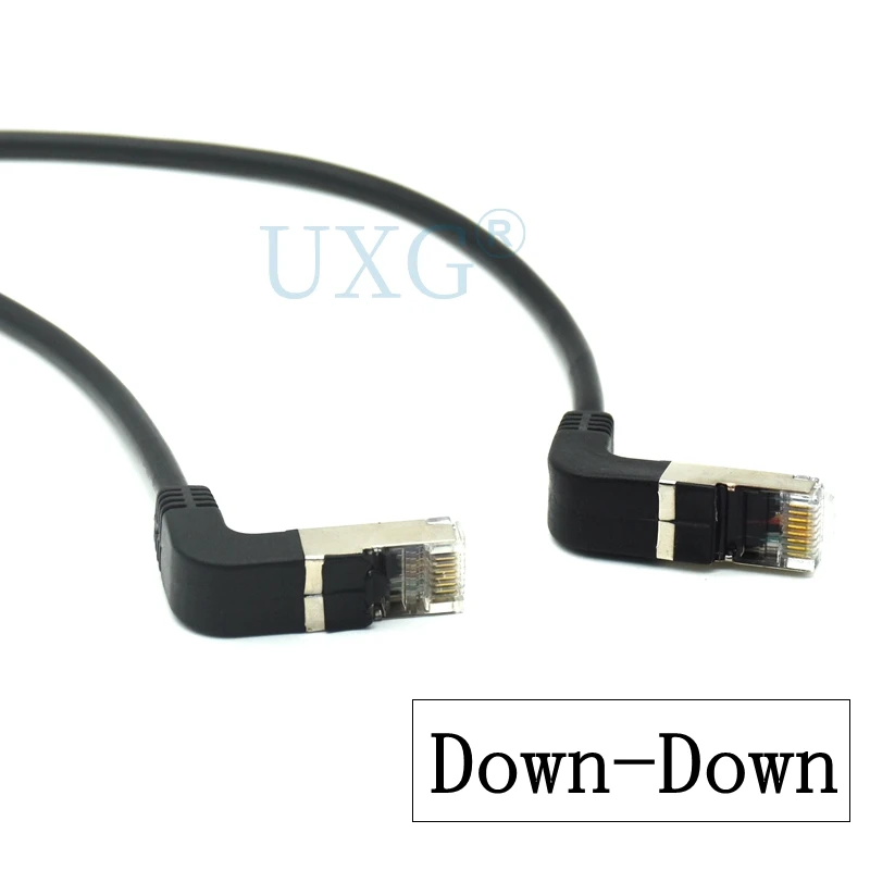 Двойной локоть вниз и вверх под углом 90 градусов cat5e 8P8C FTP STP UTP Cat 5e Ethernet сетевой кабель RJ45 сетевой патч-корд 50 см 0,5 HDMI кабель 1 м 2 м 3 м 5 м разъем вверх или вниз под углом 90 градусов 8p8c вилка. Длина: 50 см, 100 см, 200 см, 300 см, 500 см 8p8c RJ45 разъем «Папа-папа» со щитом работает для любого ethernet.