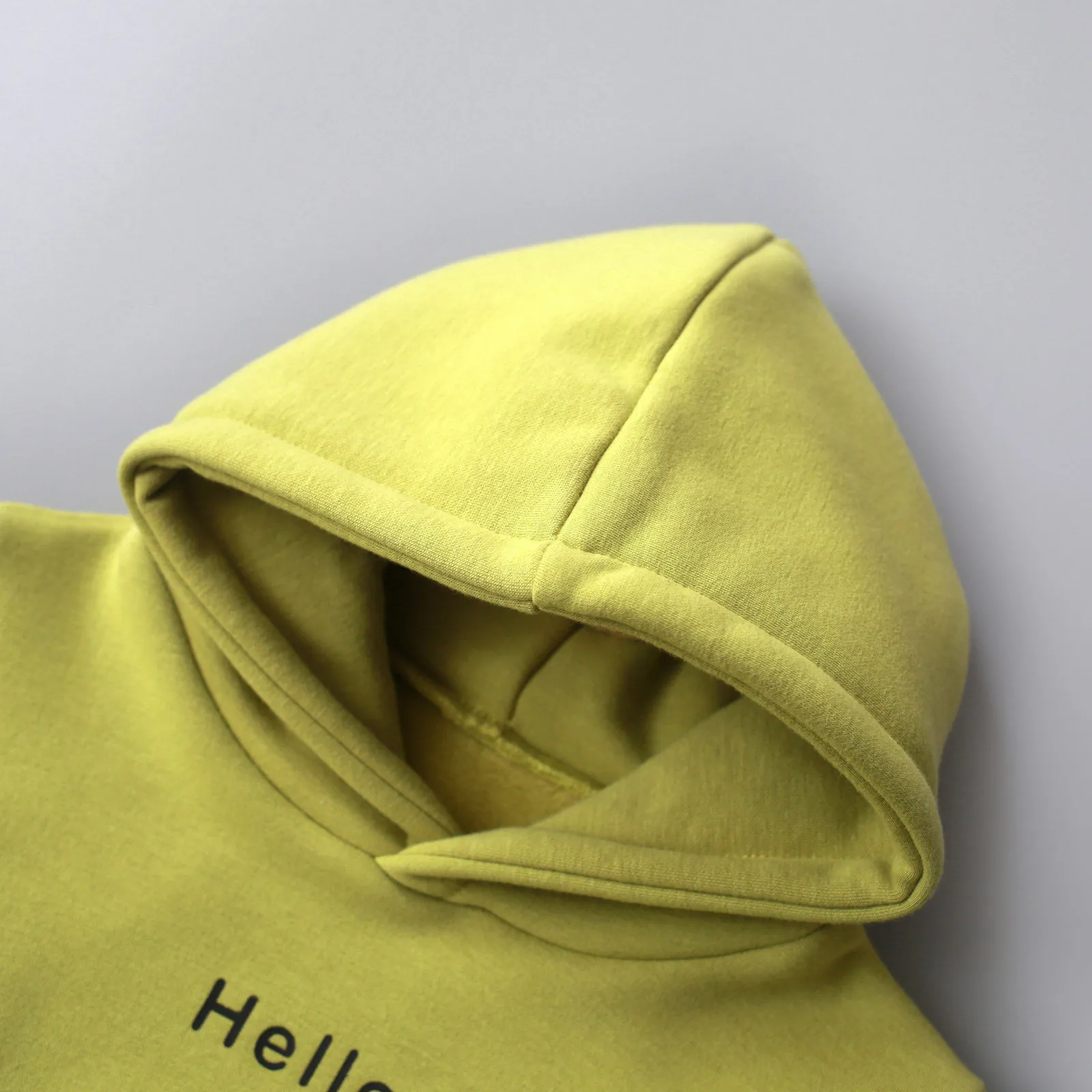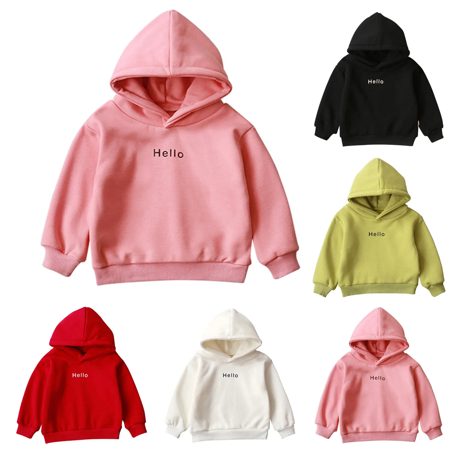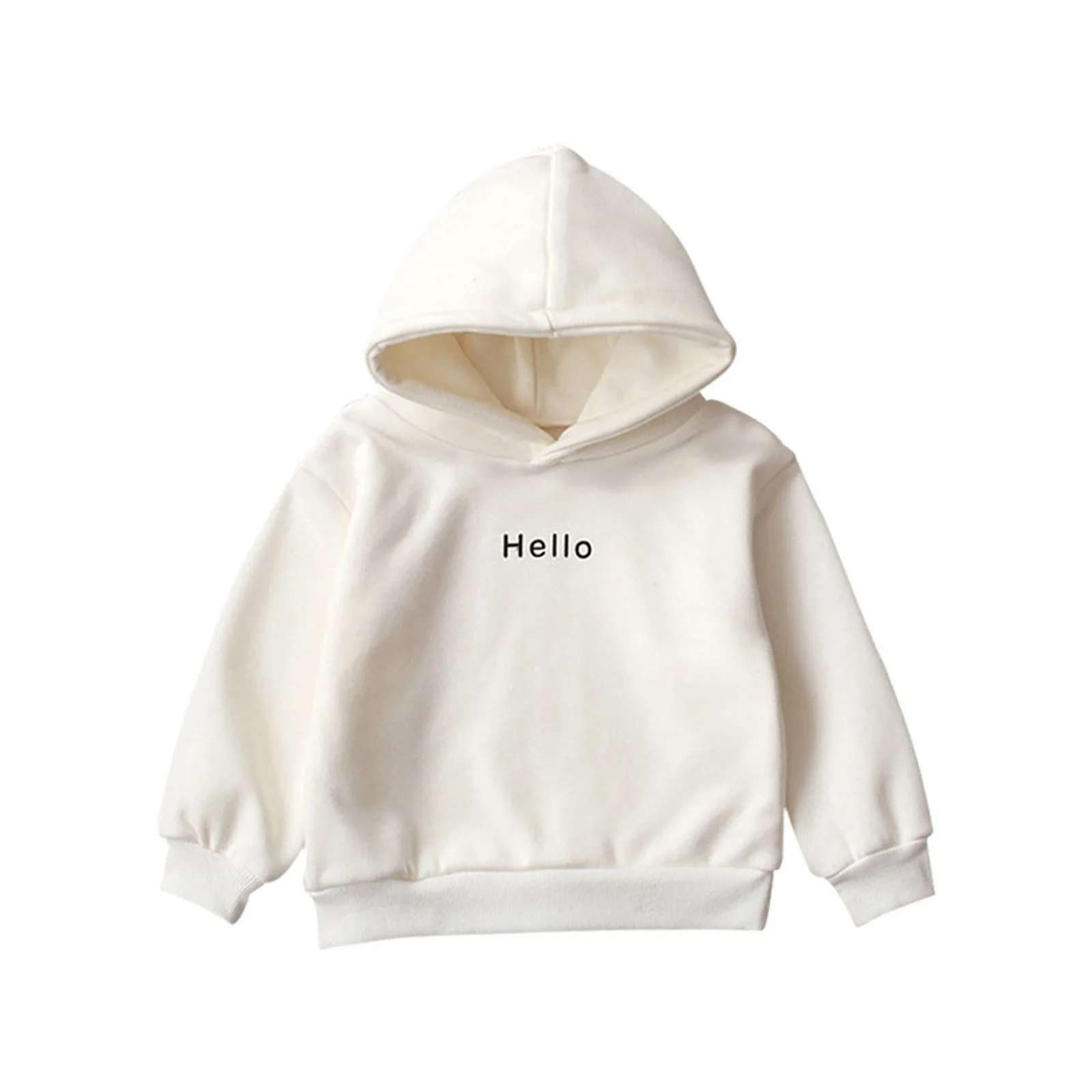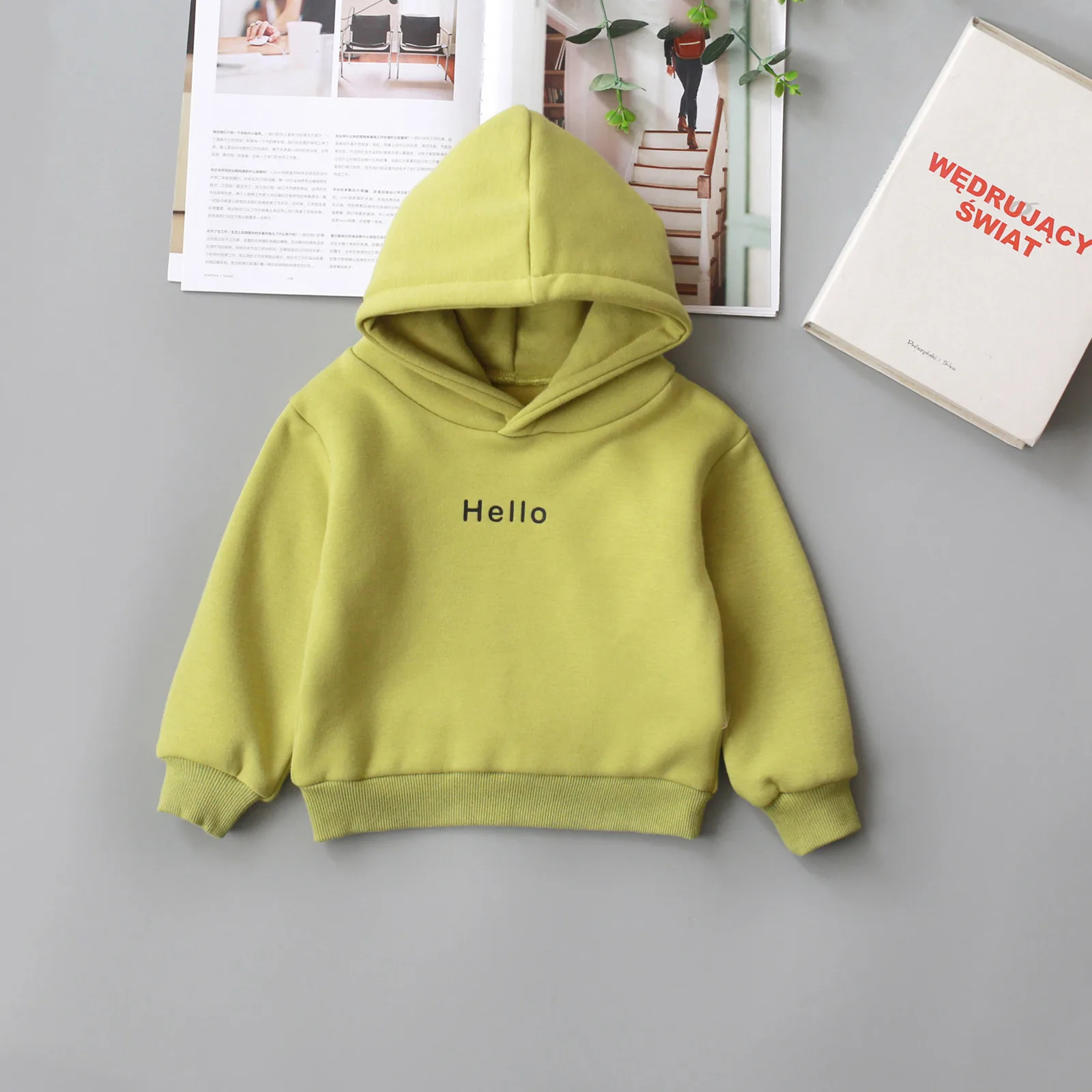 Однотонный свитер с надписью для новорожденных мальчиков и девочек, плотный Однотонный пуловер с капюшоном и надписью, теплый пуловер в Корейском стиле Y4