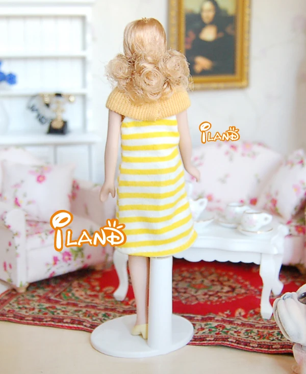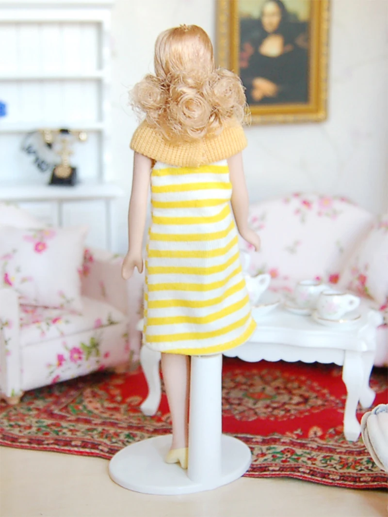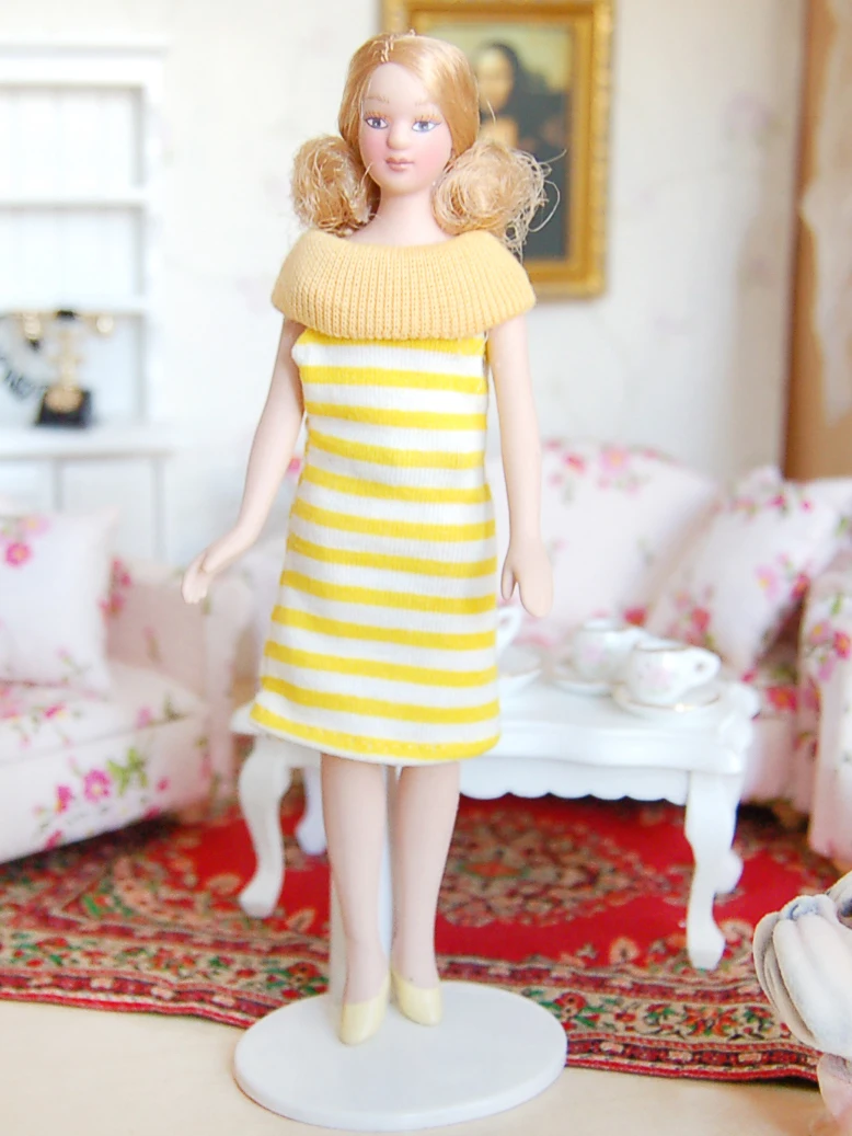Миниатюрная маленькая кукла для кукольного домика в желтом платье 112, аксессуары для кукольного домика, игрушки для девочек