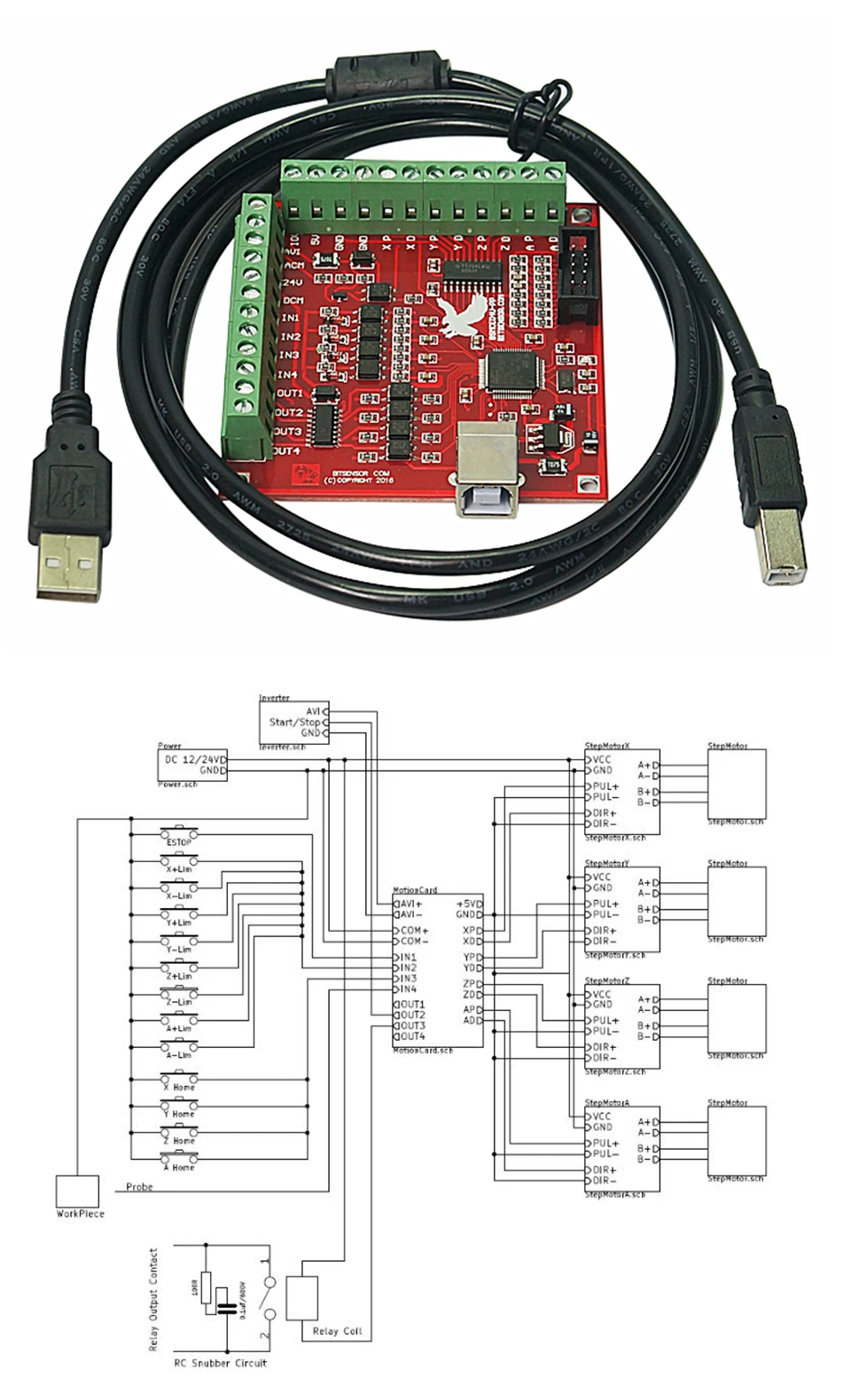 Контроллер движения для гравировального станка, 4 оси, 100K, USB, с...
