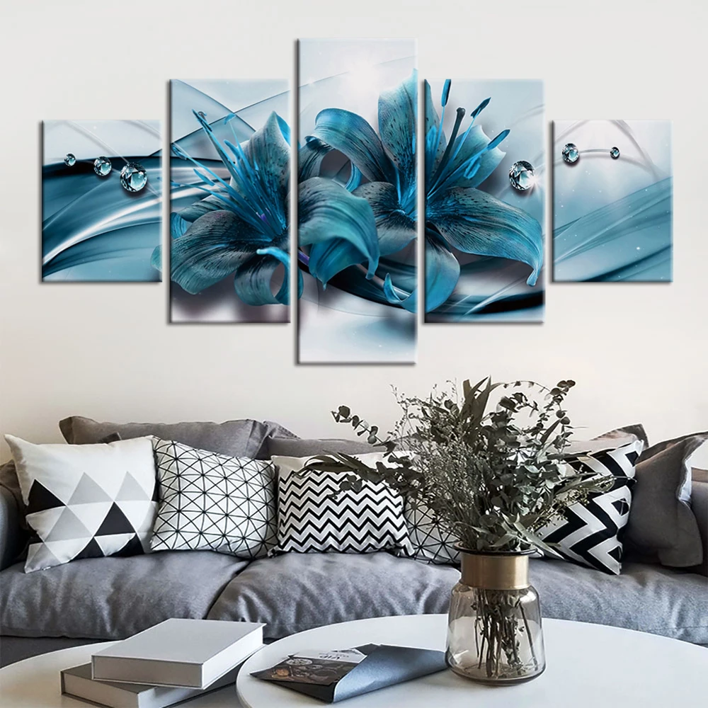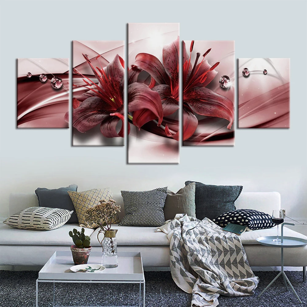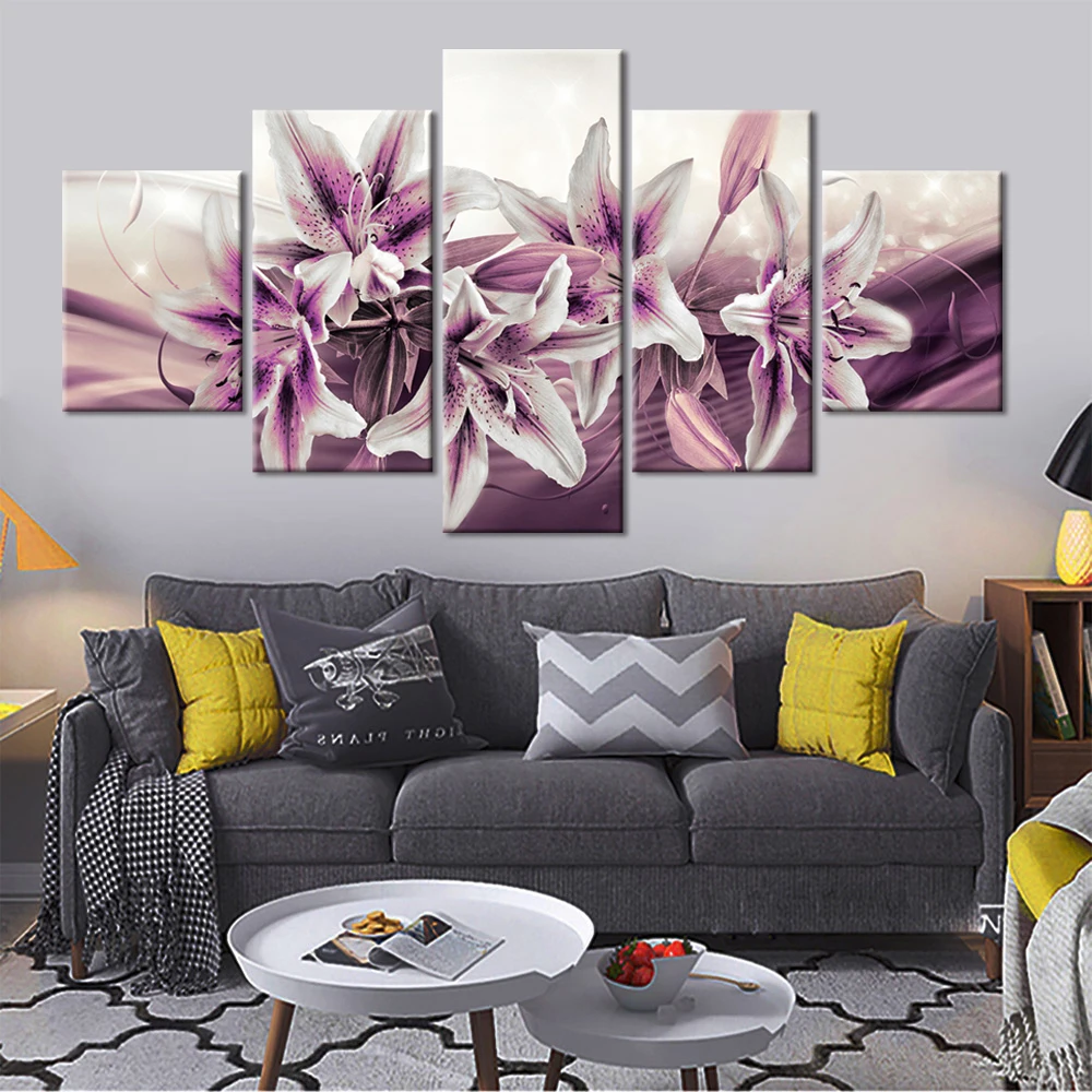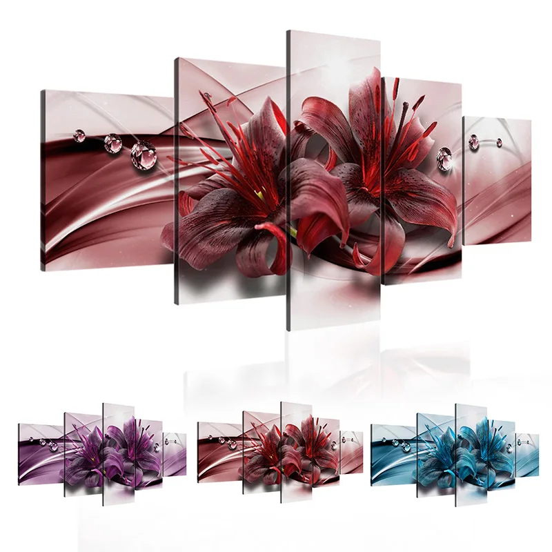 Плакат с абстрактным цветком, 5 шт., модульные красочные картины с лилиями, домашний декор, HD-печать, настенное искусство, картины на холсте для гостиной
