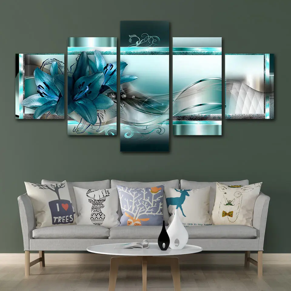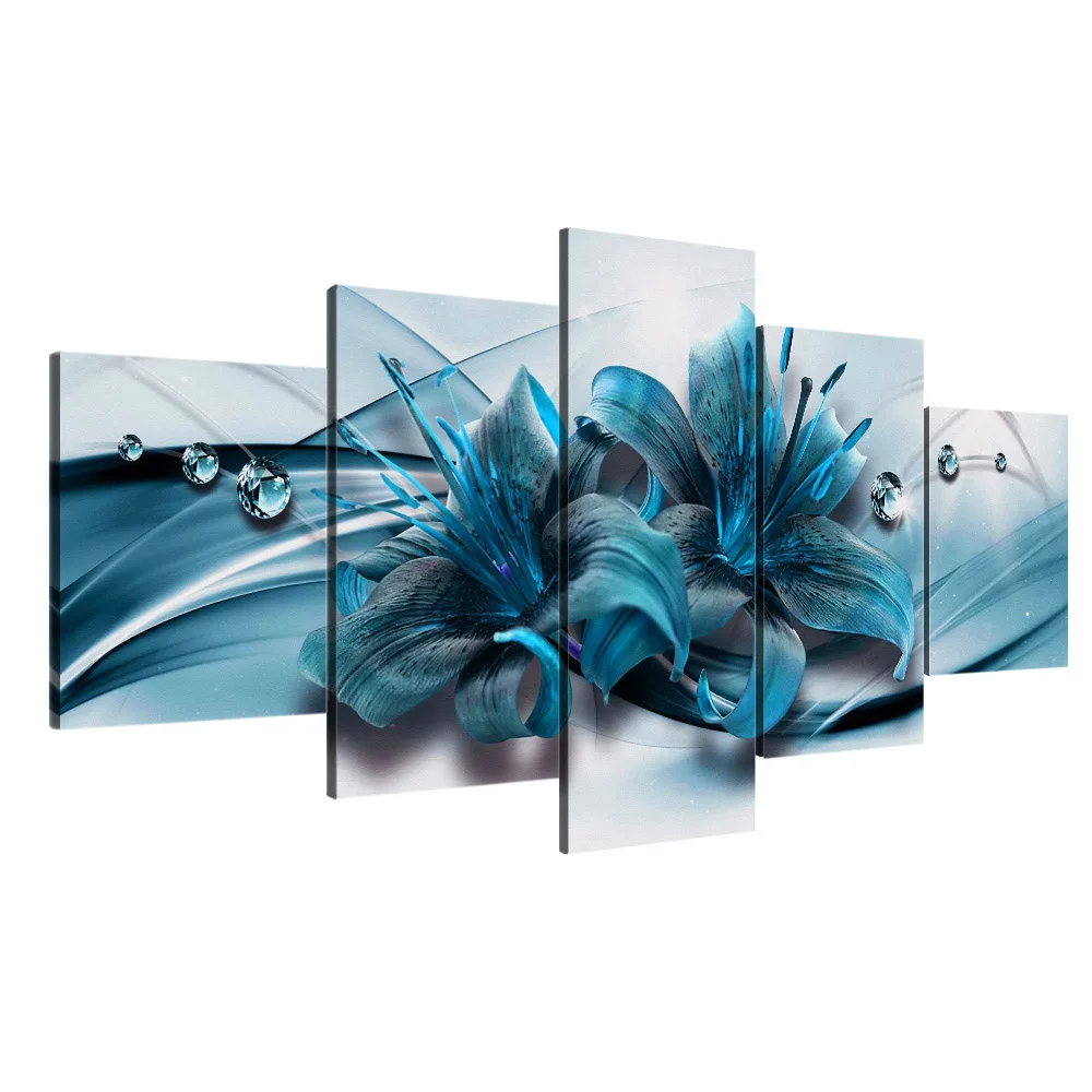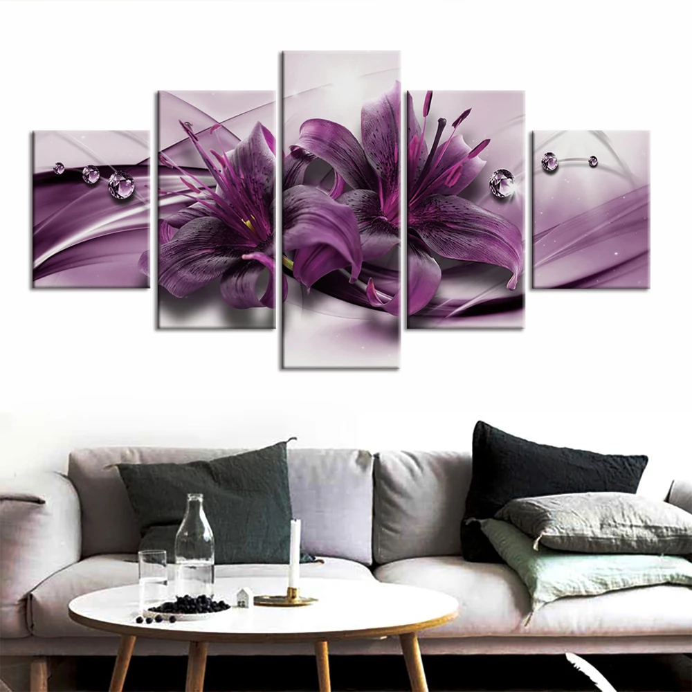 Плакат с абстрактным цветком, 5 шт., модульные красочные картины с лилиями, домашний декор, HD-печать, настенное искусство, картины на холсте для гостиной