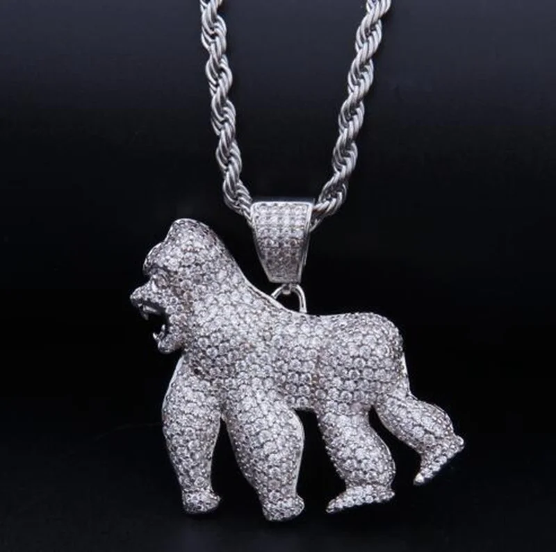 Классическое модное животное Горилла ожерелье высокое качество металлический камень кулон ожерелье ювелирные изделия