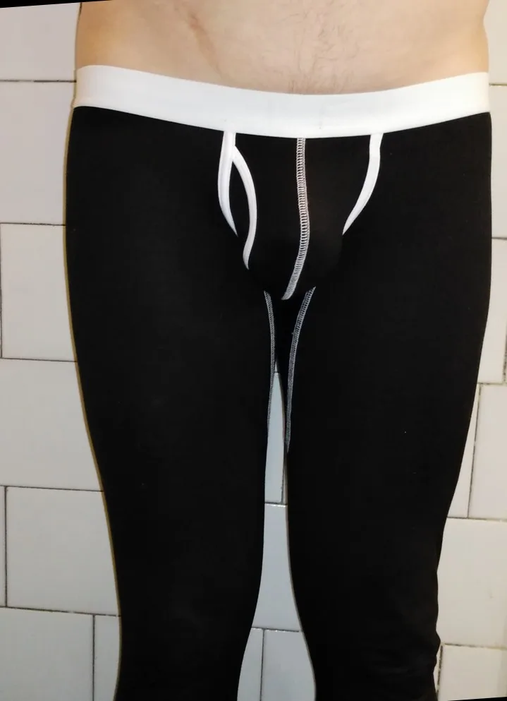 Мужские пикантные длинные Термолеггинсы с пузырьковым мешочком, теплые дышащие брюки для фитнеса, нижнее белье и одежда для сна на осень и зиму
