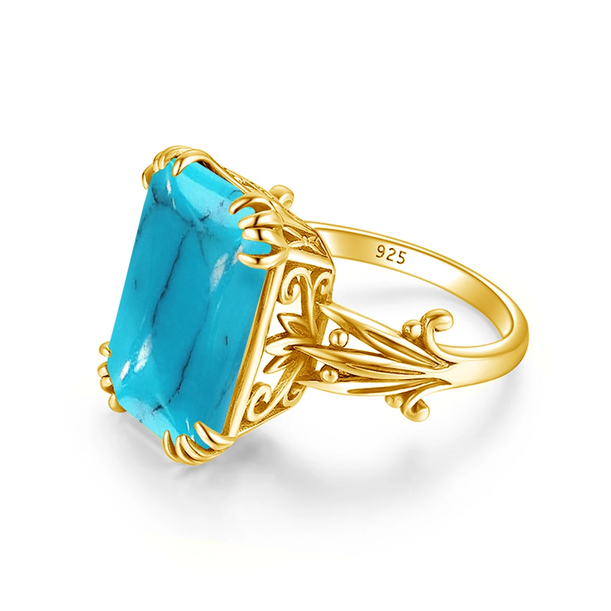 Бренд: Rosewood StoryТип камня: синтетический бирюзовыйРазмер основного камня: 13*18 ммФорма камня: прямоугольникТип металла: чистое 925 пробы покрытое серебром и золотомТовар Вес: 5,5 г