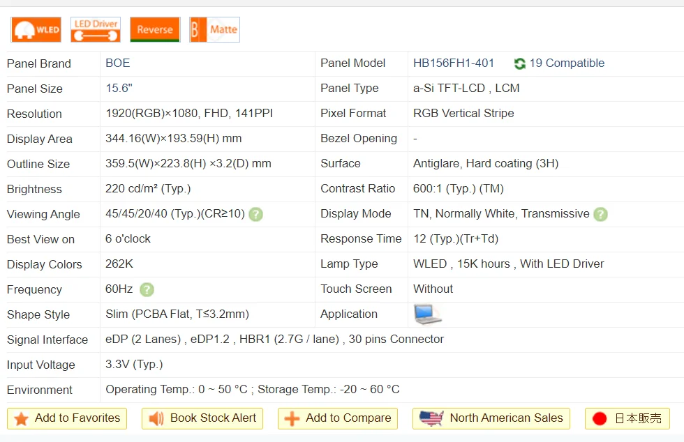 Номер моделиHB156FH1-301 B156HTN03.4 B156HTN03.7