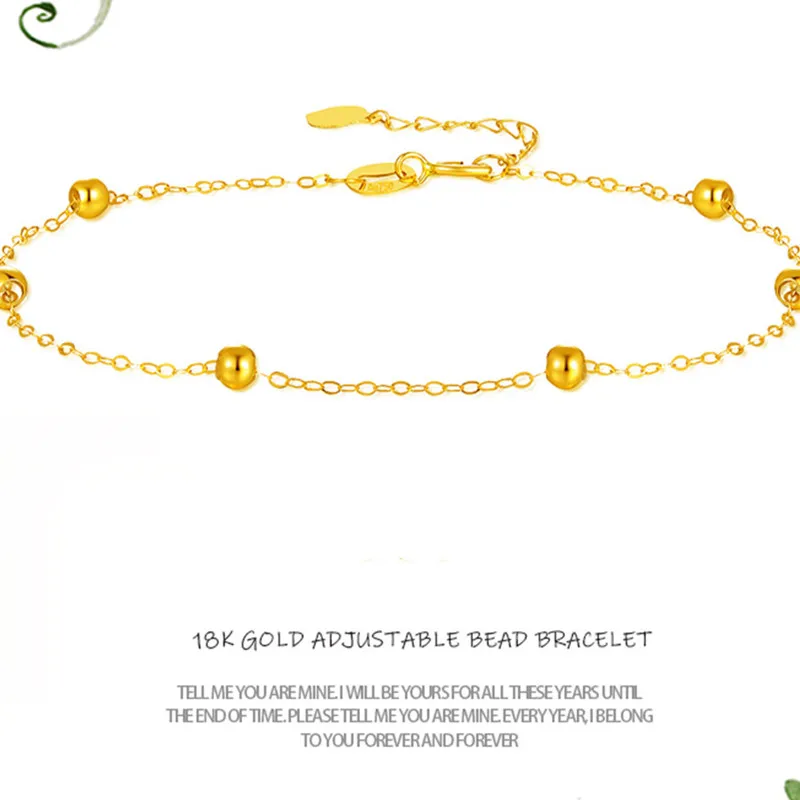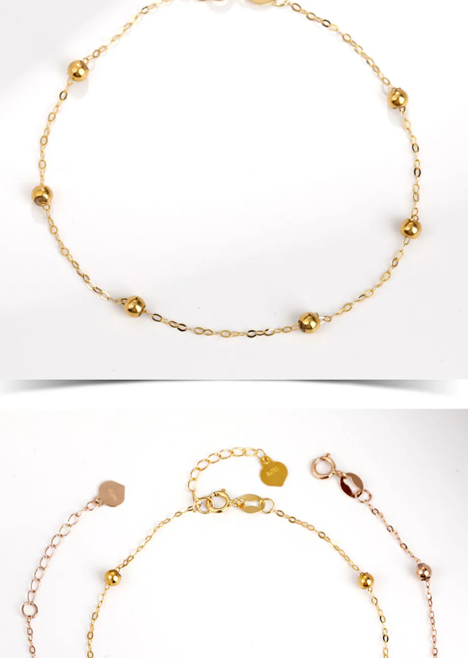 NYMPH 18K золотой ножной браслет для женщин, изысканные ювелирные изделия, настоящее AU750, цельный круглый шар, раздвижные, чистое золото, регулируемая цепочка, роскошный подарок B511