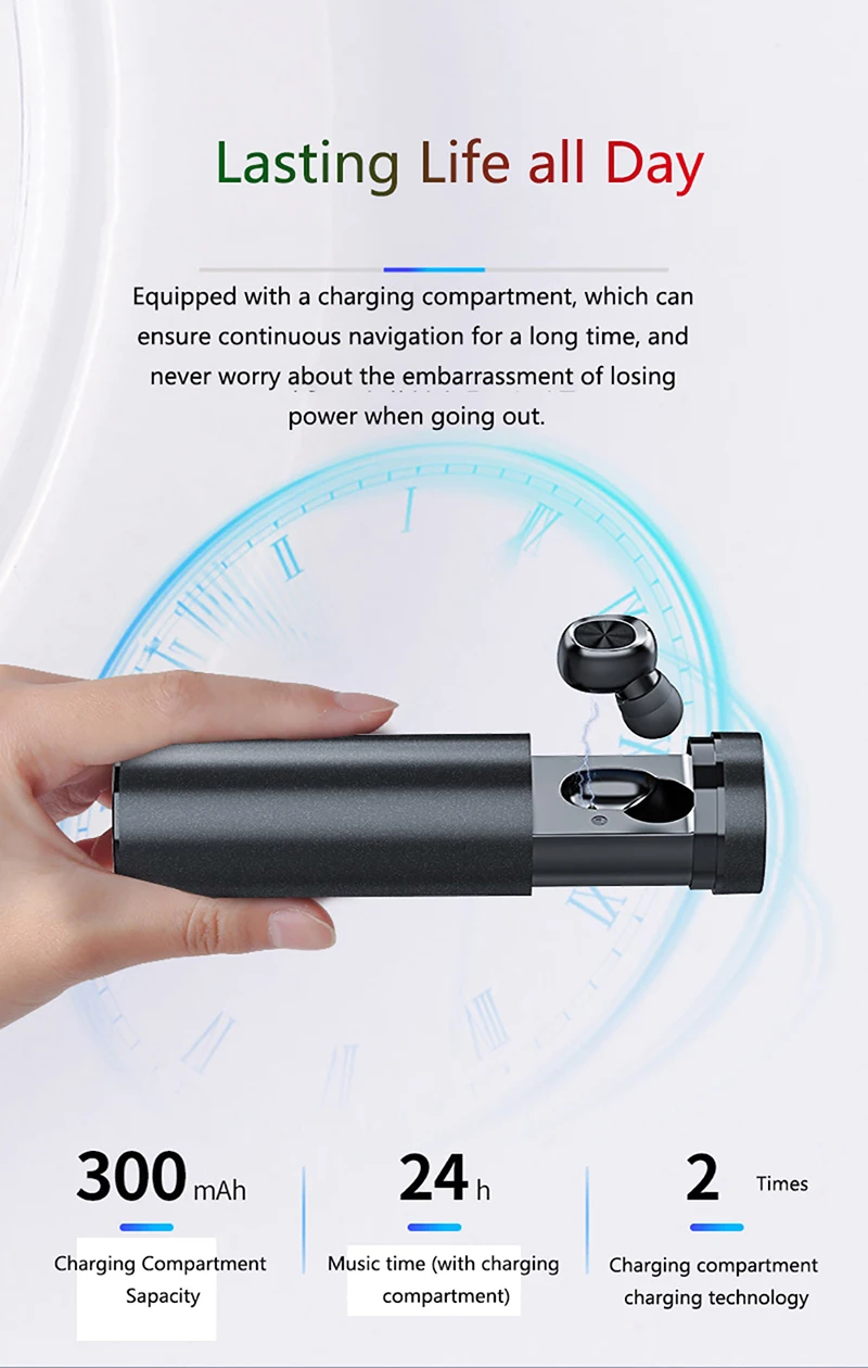 Описание:Беспроводные наушники со светодиодной подсветильник кой умный крутой, в которых используется чип Bluetooth 5,0 второго поколения, умные и удобные в использовании.Беспроводные наушники имеют эргономичный дизайн и не падают при ношении на ухо.Не важно, потеет ли в спортзале или занятия спортом на открытом воздухе под дождем, это не повредит наушники.Поддержка одиночного/бинаурального использования (левый и правый наушники имеют встроенные микрофоны для независимых голосовых вызовов).Эргономичная головка наушников с мягкими наушниками из натурального силикона не вызовет боли в ушах и других плохих условий, даже если вы носите наушники в течение длительного времени.Спецификация:Версия Bluetooth: Bluetooth 5,0 второго поколения.Продолжительность музыки/звонка: 3 часа.Зарядный блок может зарядить гарнитуру: 4-5 раз.Емкость зарядного устройства: полимерный литиевый аккумулятор 300 мАч.Емкость наушников на одно ухо: полимерный литиевый аккумулятор 60 мАч.Чувствительность: 120 дБ.Импеданс: 32Ω.Расстояние передачи Bluetooth: 10 метров.Напряжение зарядки: 3,7 в.Декодер Bluetooth: ACC.Цвет: как на изображении.Размер: как на изображении.Посылка2 Bluetooth-гарнитуры (левое и правое уши)1 * полностью металлический чехол для зарядки6 * наушников из натурального силикона (Большой/средний/маленький)1 * Инструкция по эксплуатации1 * USB-кабель для зарядки