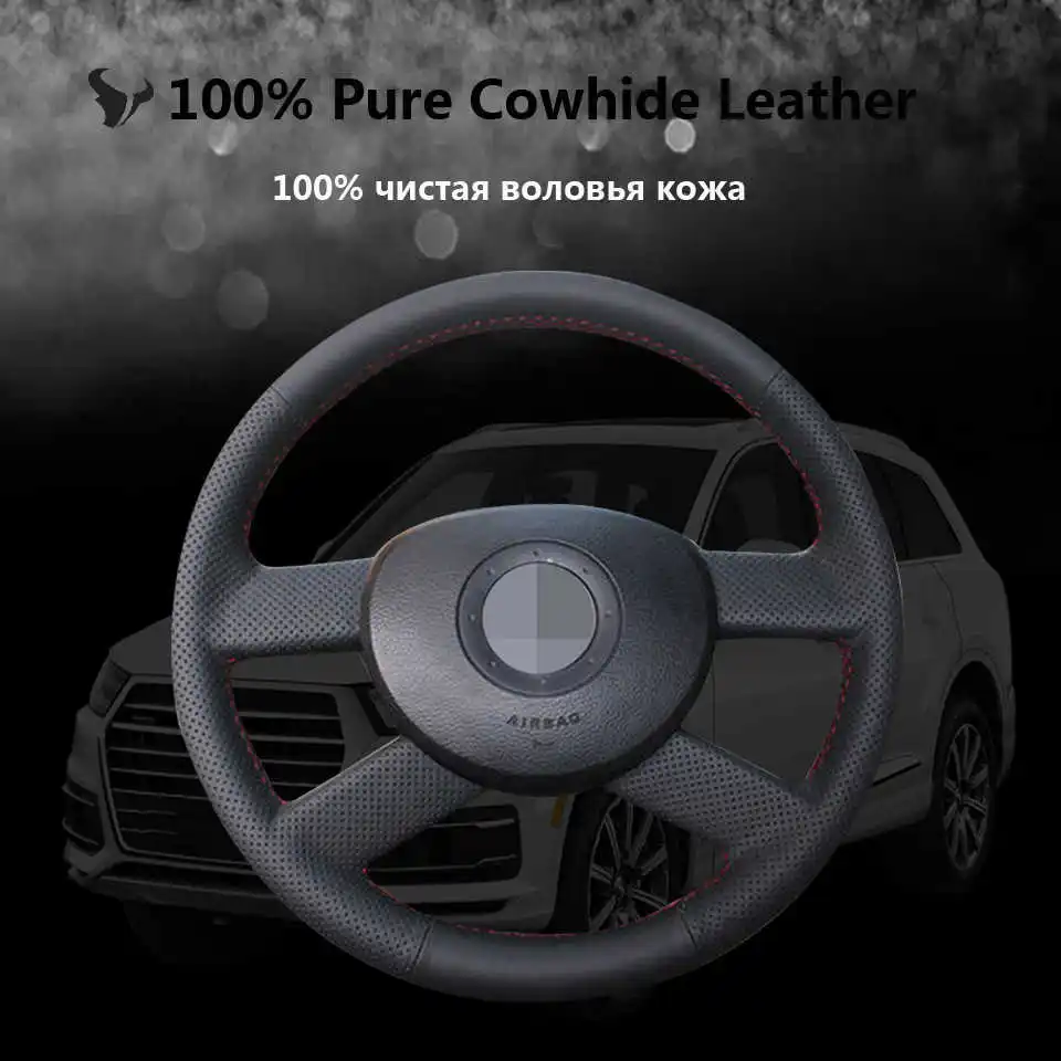 Черная крышка рулевого колеса из натуральной кожи для volkswagen vw polo 2003 2004 2005 2006