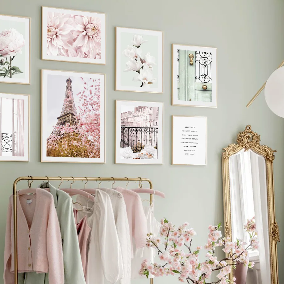Настенный постер с изображением Парижской башни, балкона, пионов, георгинов, магнолий, цветов в скандинавском стиле, Картина на холсте, декор для гостиной