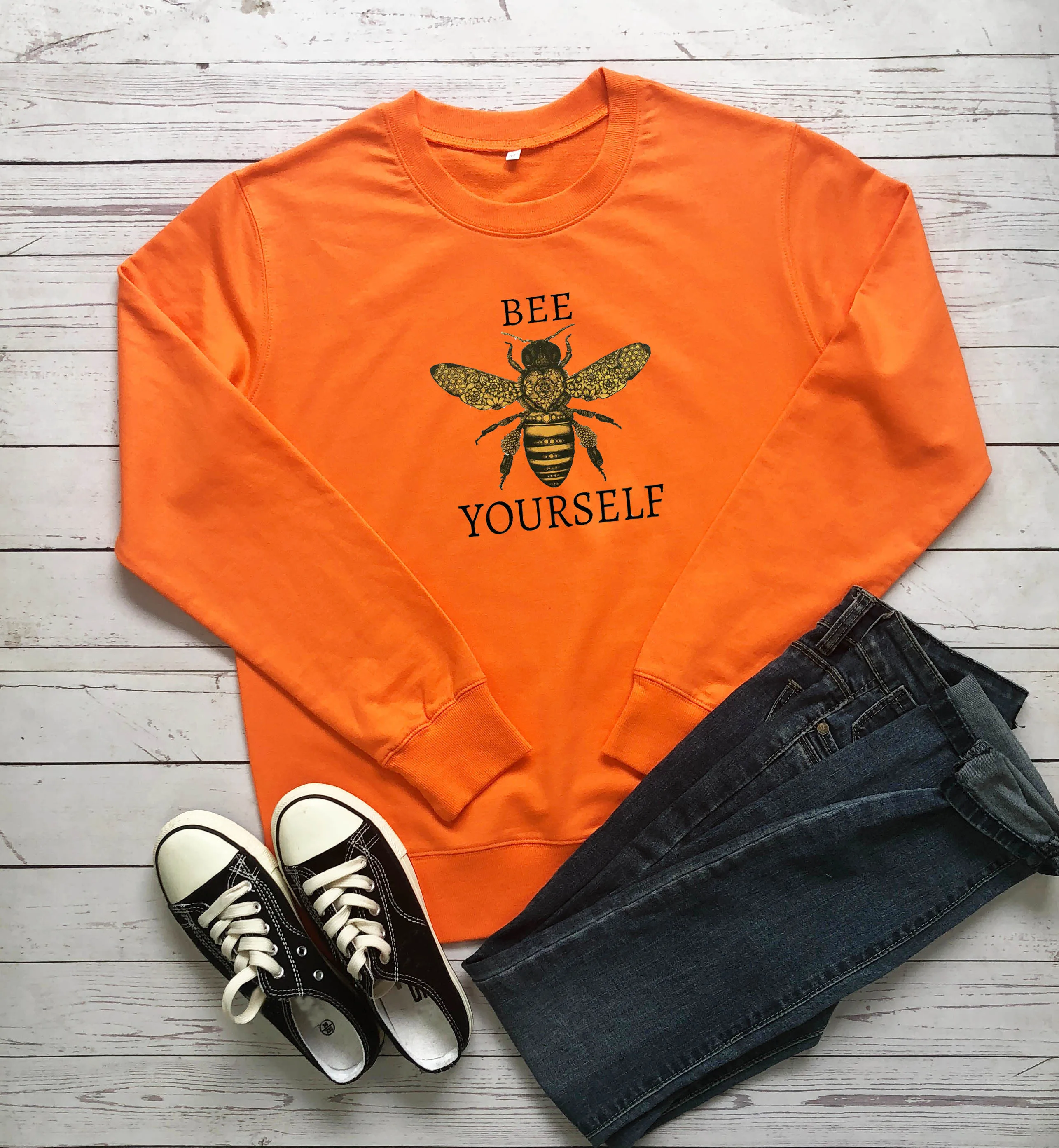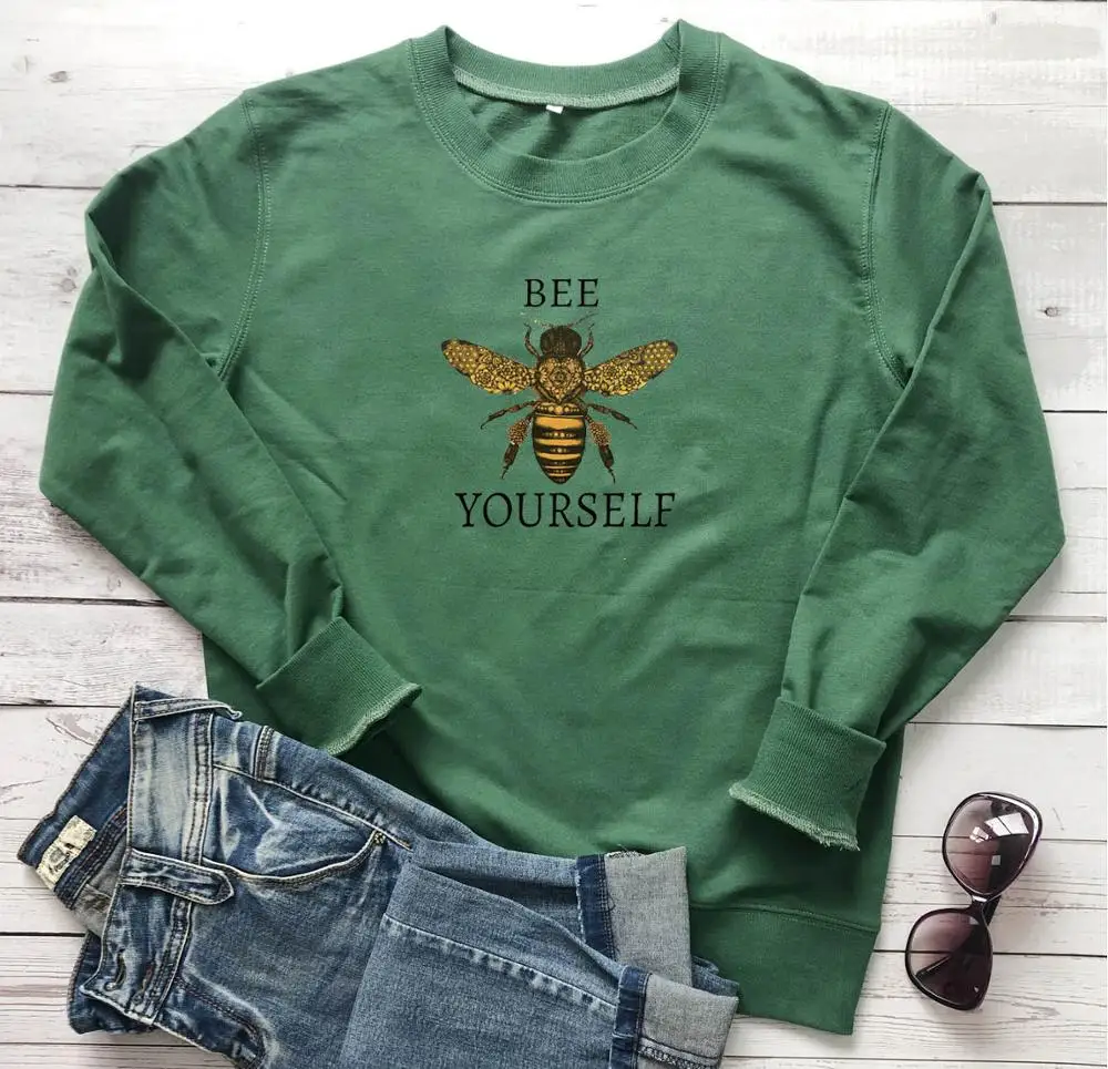 Свитшот женский хлопковый с надписью Bee yourself, для хипстерских вечеринок