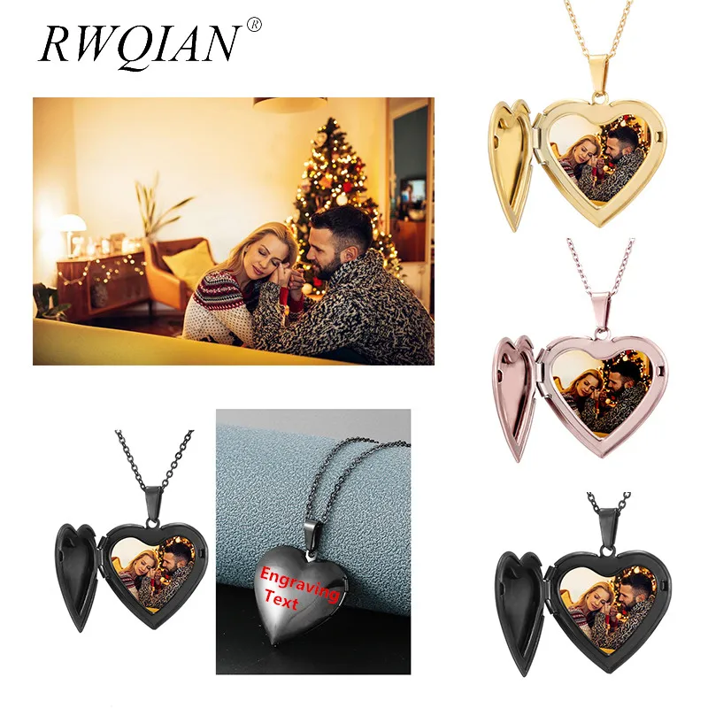 2020 заказное семейное фото имя ожерелье сердце медальон гравировка имя розовыйзолотойчерный ожерелья для женщин мужчин чокер шеи ювелирные изделия