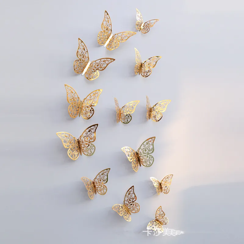 12 шт.лот 3D металлик на ощупь полые бабочки наклейки на стену для ...