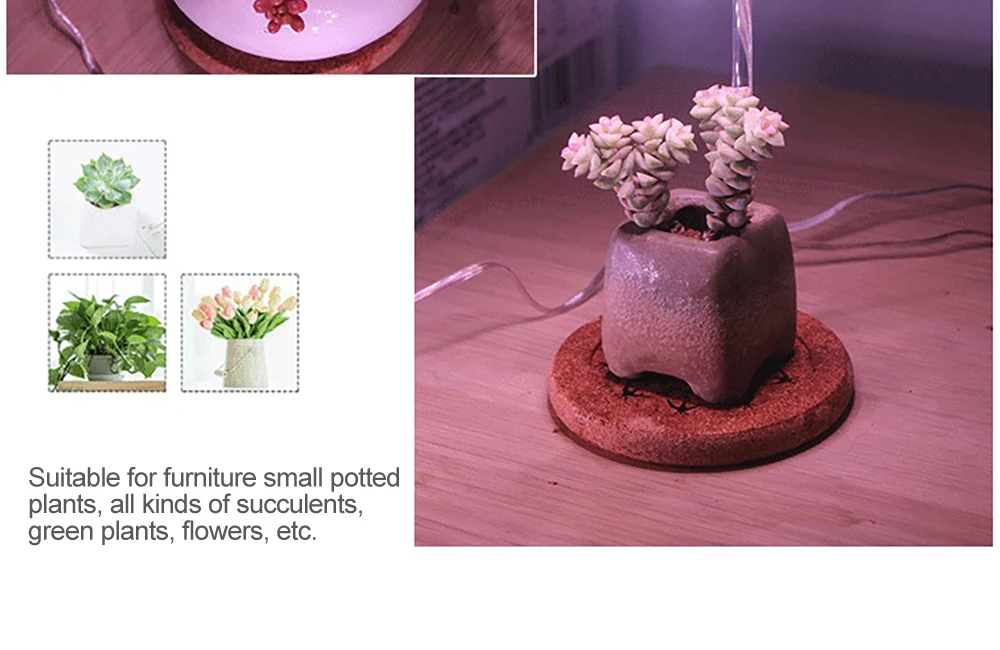 посылка шла около полутора месяцев, лампы миниатюрные, выглядят стильно, пока что тяжело сказать об их эффективности, покажет время, когда определю им конкретное растение. я покупала для суккулентов, для обычных лиственных цветочков думаю будет хорошо. заказ пришел в аккуратной коробочке, кабель заканчивается разъемом юсб, мои переходники на европейскую розетку греются, использовала переходники для зарядки телефонов. в комплекте переходника нет.