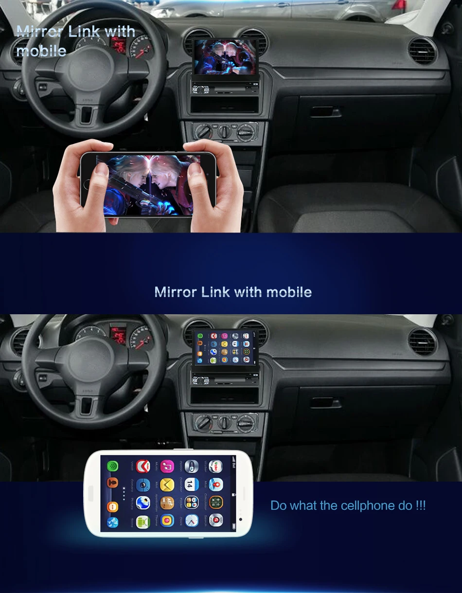 1:Bluetooth бесплатно. Поиск телефонной книги по Bluetooth от "A до Z" 2:HD емкостный мультитач экран: 1024*600 3: камера заднего вида/запись привода DVR от заднего USB: Поддержка 4:OBD, внешний микрофон, зеркальная связь: поддержка (требуется дополнительная оплата) 5: холодный запуск около 20-35 секунд 6: зеркало, управление рулем: Поддержка 7:Wi-Fi: Встроенный/через телефон в качестве Wi-Fi горячей точки. 8: поддержка приложений: многие, например: Google Play Store, Skype, Facebook, YouTube, Twitter и т. Д. 9: Поддержка RDS.FM частота: 87,5-108MH AM частота: 522-1710 кГц 10: Автомобильный Интернет: встроенный wifi, suport 3G/4G/современный (требуется дополнительная оплата) 11: Поддержка GPS онлайн-карты, такие как Google Yandex.SYGIC,IGO,TOMTOM/ Waze.Yandex карта должна связаться с нами для установки 12: мульти OSD Languaes: английский/русский/французский/немецкий/испанский/итальянский/арабский/Португальский/Турецкий/тайский/Польский/иврит и т. д. 60 видов языка 13: Рабочая температура: -20 °C ----- + 70 °C Температура хранения: -30 °C ----- + 80 °C 14: Логотип Ботинка: Выберите Встроенный 50 видов Автомобильного Логотипа. Выберите логотип автомобиля, который вам нравится. 15:RCA кабели для сабвуфера, кабель питания plug and play, легко установить 16: чистая ОС Android, Google Play Store, Skype, Facebook, YouTube, Twitter и т. Д.17. Гарантия: 1 год18. Бесплатный подарок: камера заднего вида + встроенная карта