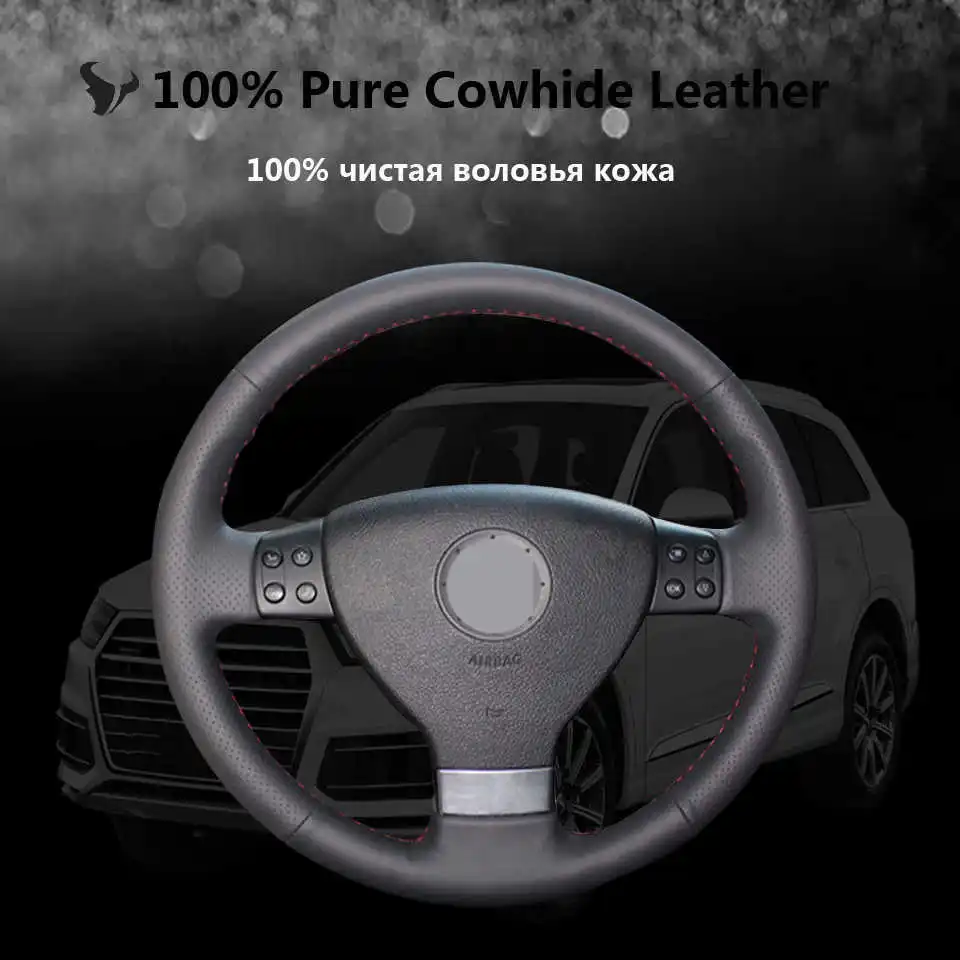 Чехол рулевого колеса автомобиля из натуральной кожи черного цвета для Volkswagen Golf 5 Mk5 VW Passat B6 Jetta 5 Mk5 Tiguan 2007 2008 2009 2010 011