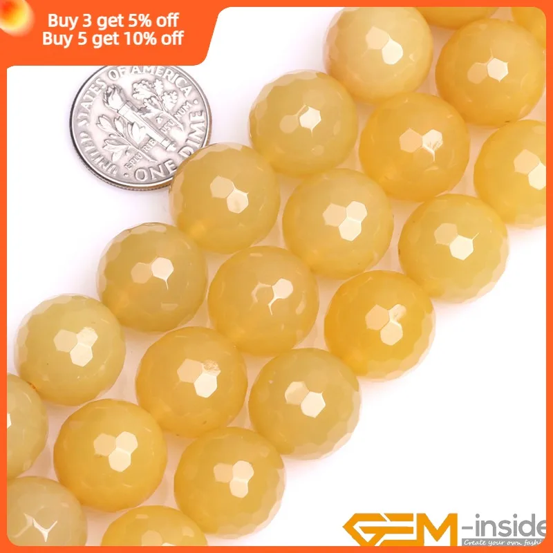 Круглые желтые бусины из нефрита, бижутерия, бусина для самостоятел...