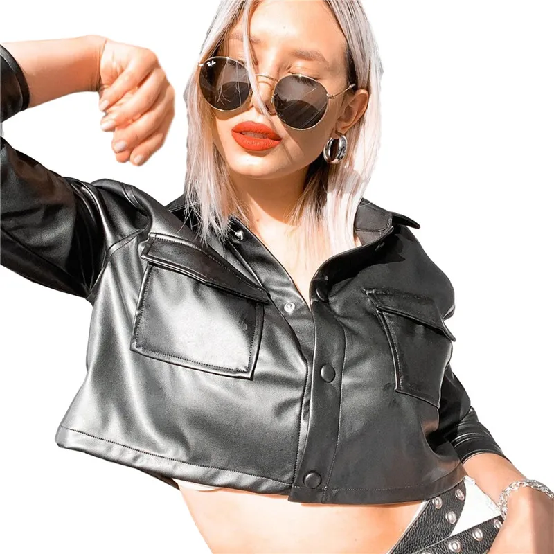 Новинка, весна-осень, женская короткая куртка из искусственной кожи, тонкая модная верхняя одежда в стиле панк, мотоциклетная кожаная куртка, повседневное короткое Укороченное пальто