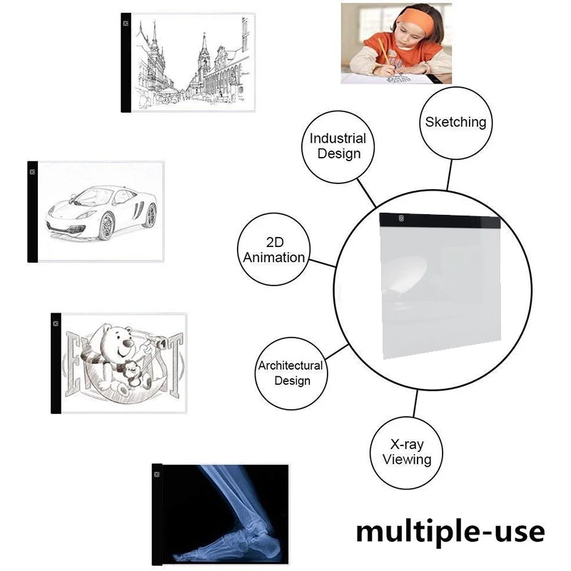 Питание поставляется через usb-кабель, удобный для доступа к любому usb-порту, например, компьютеру, usb-разъему или даже внешнему аккумулятору.Легкий и большой размер с подсветкой, удобно рисовать фотографии, почерк и другие виды деятельности.Высокая прозрачная акриловая панель с большой прочностью и долговечностью.Плавное затемнение, светильник защищает глаза и эффективно.Вам не нужно устанавливать программное обеспечение, вставлять разъем и включать его, давайте начнем творческую работу.