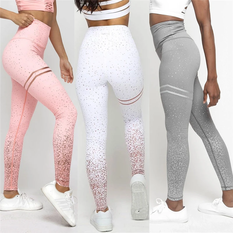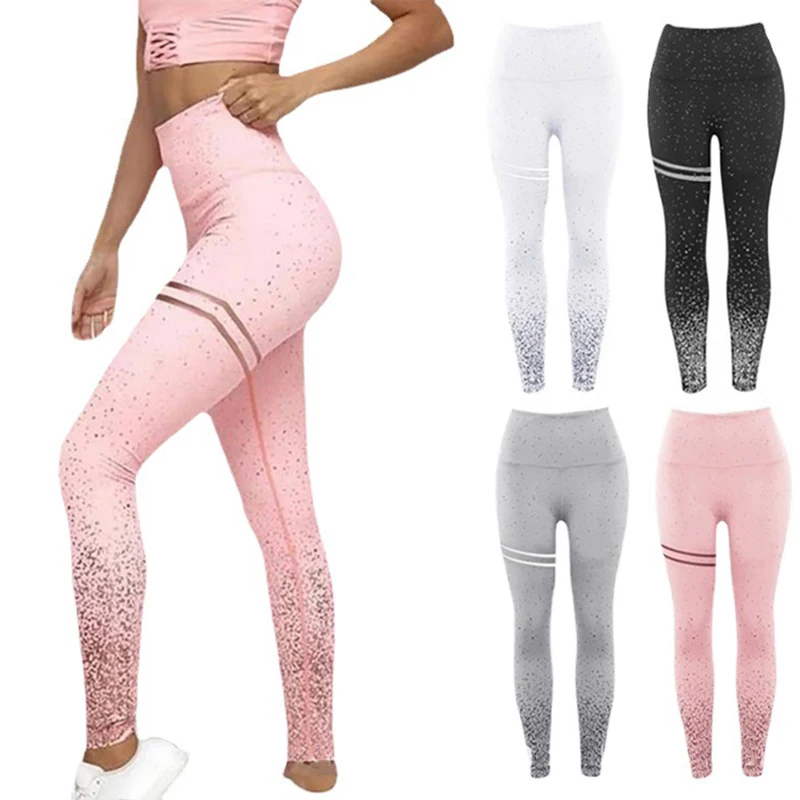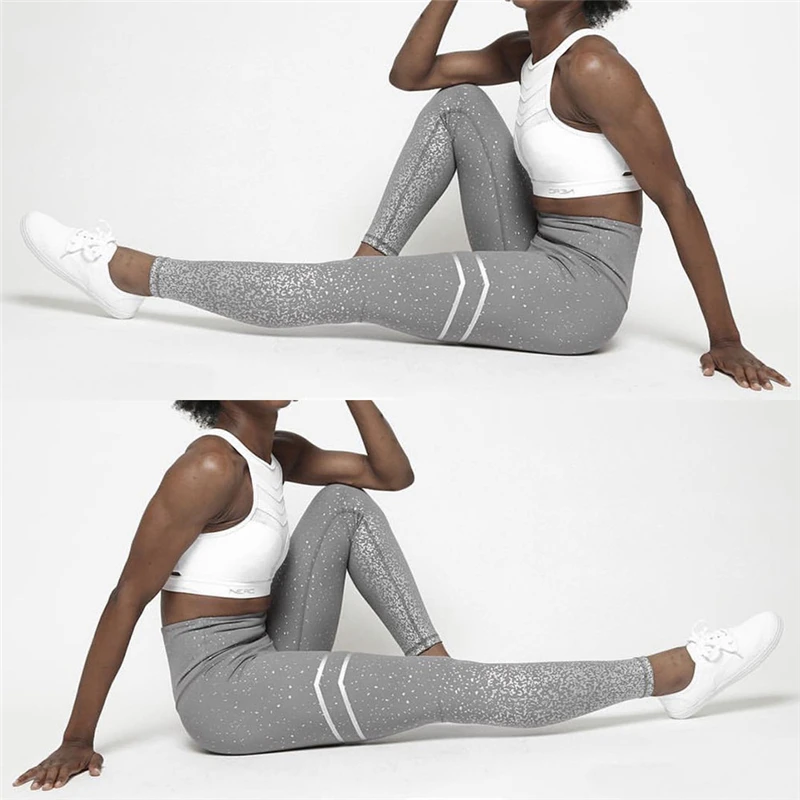 Штаны для йоги, леггинсы с высокой талией, женские блестящие леггинсы с высокой талией для йоги и фитнеса, блестящие эластичные спортивные брюки для бега, тренажерного зала, брюки