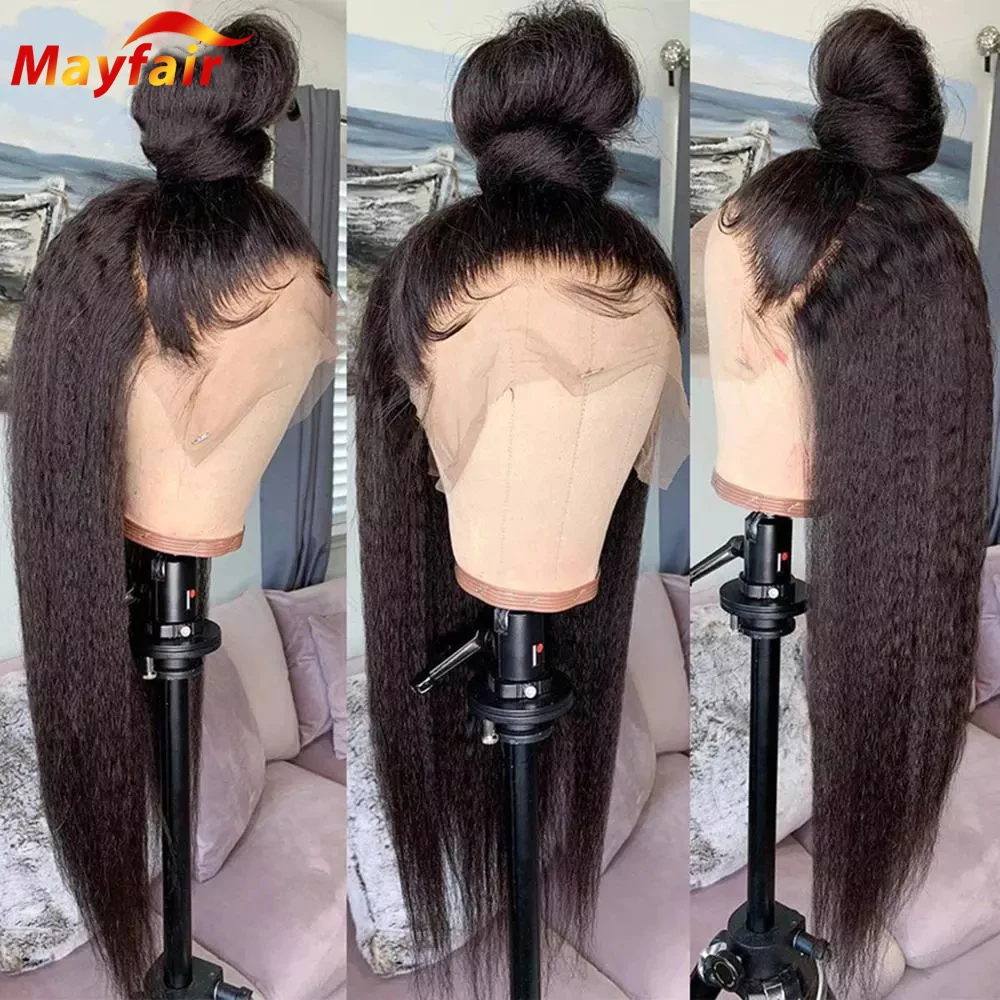 28 дюймов 13x4 Синтетические волосы на кружеве парик кудрявые прямые предварительно собранные человеческие волосы для парика фронтальной 4x4 застежка Яки парики для чернокожих Для женщин