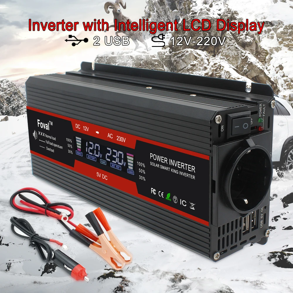 Инвертор напряжения с ЖК-дисплеем, преобразователь напряжения пиковой мощности, трансформатор, 12 В постоянного тока в 6000 В переменного тока, 2 USB-порта, для автомобиля, под европейскую розетку для телефона, 220 Вт