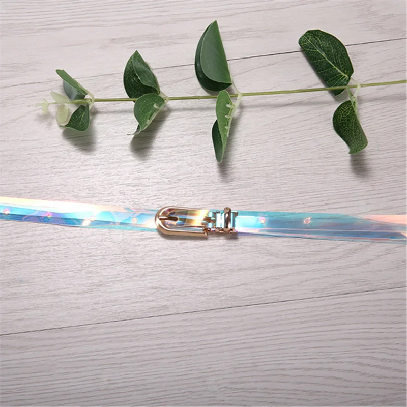 1 шт., Прозрачный Женский лазерный голографический Радужный прозрачный ремень с пряжкой, широкий пояс, ремень для девушек, невидимый пояс в стиле панк