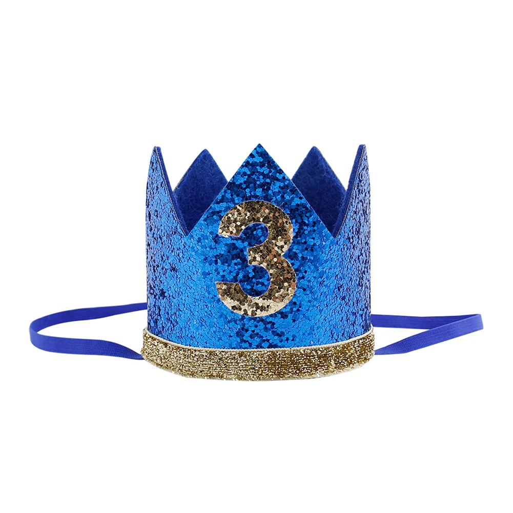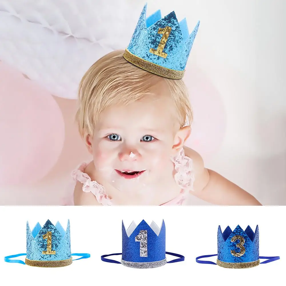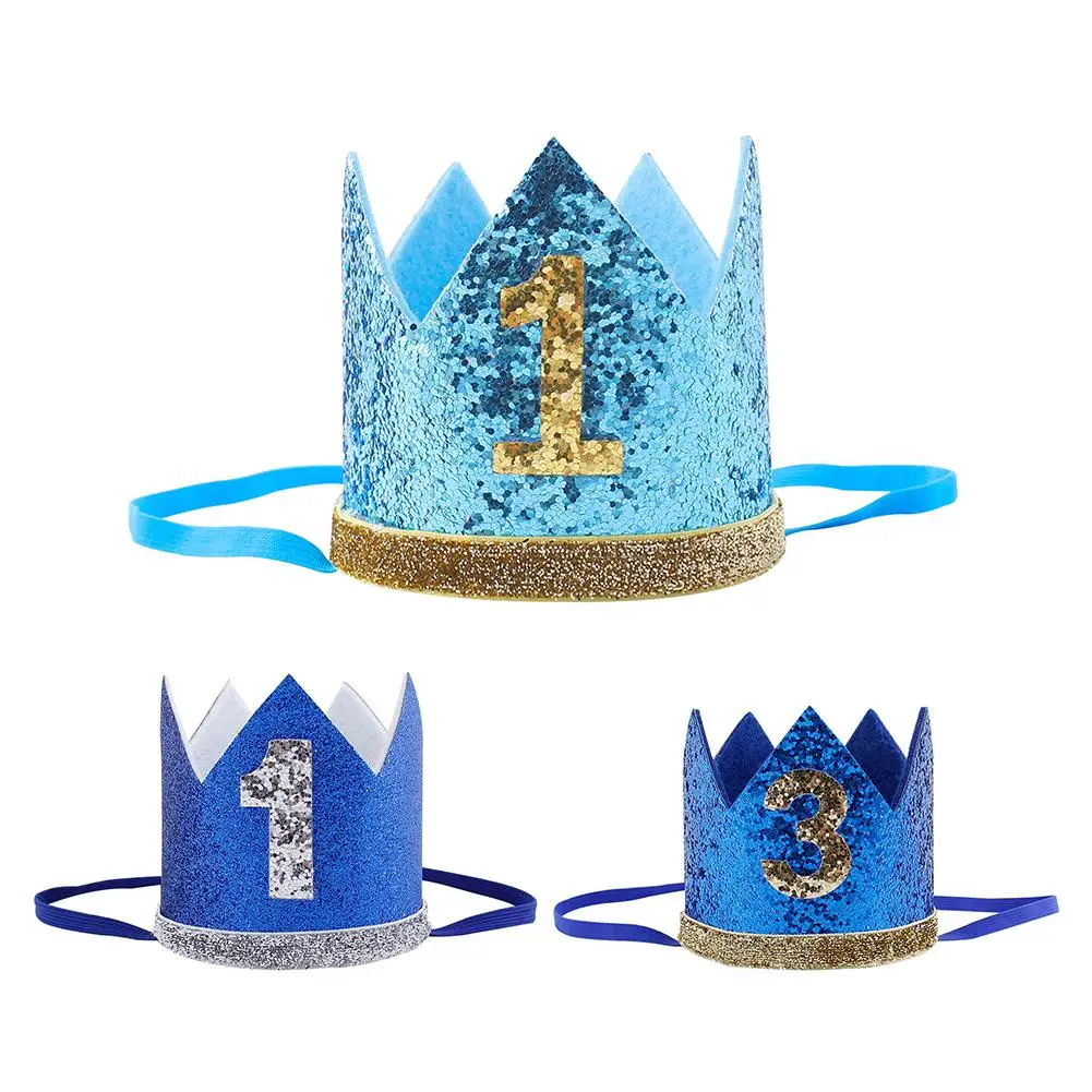 Синяя блестящая корона на день рождения для мальчиков и девочек, корона на 1-й день рождения, шляпа, повязка на голову, украшение