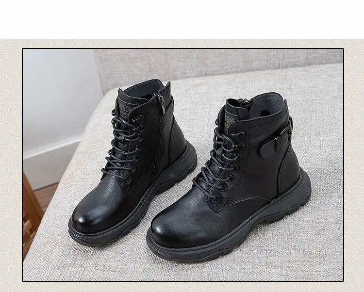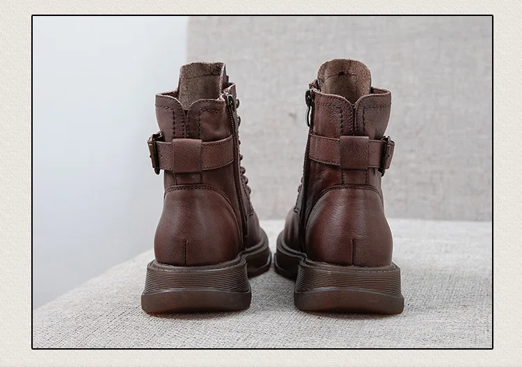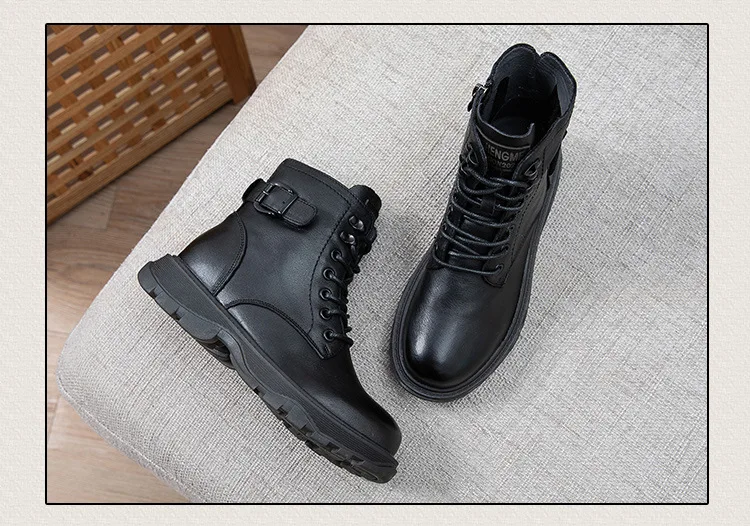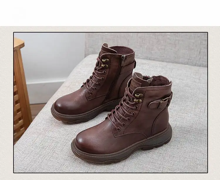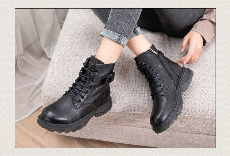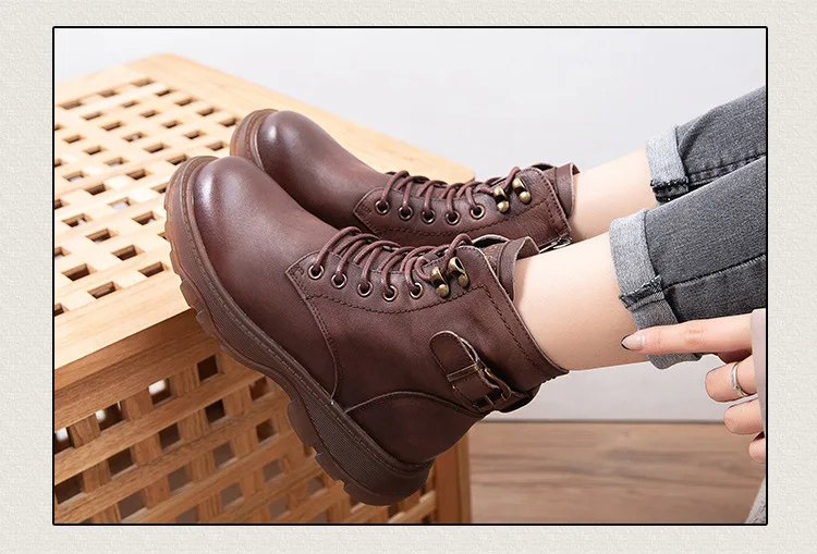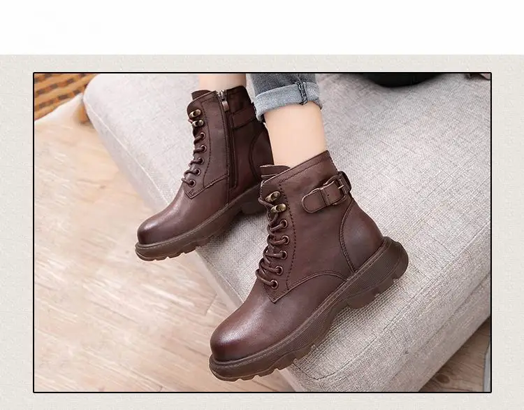 Ботинки женские из натуральной кожи, на плоской подошве, на шнуровке