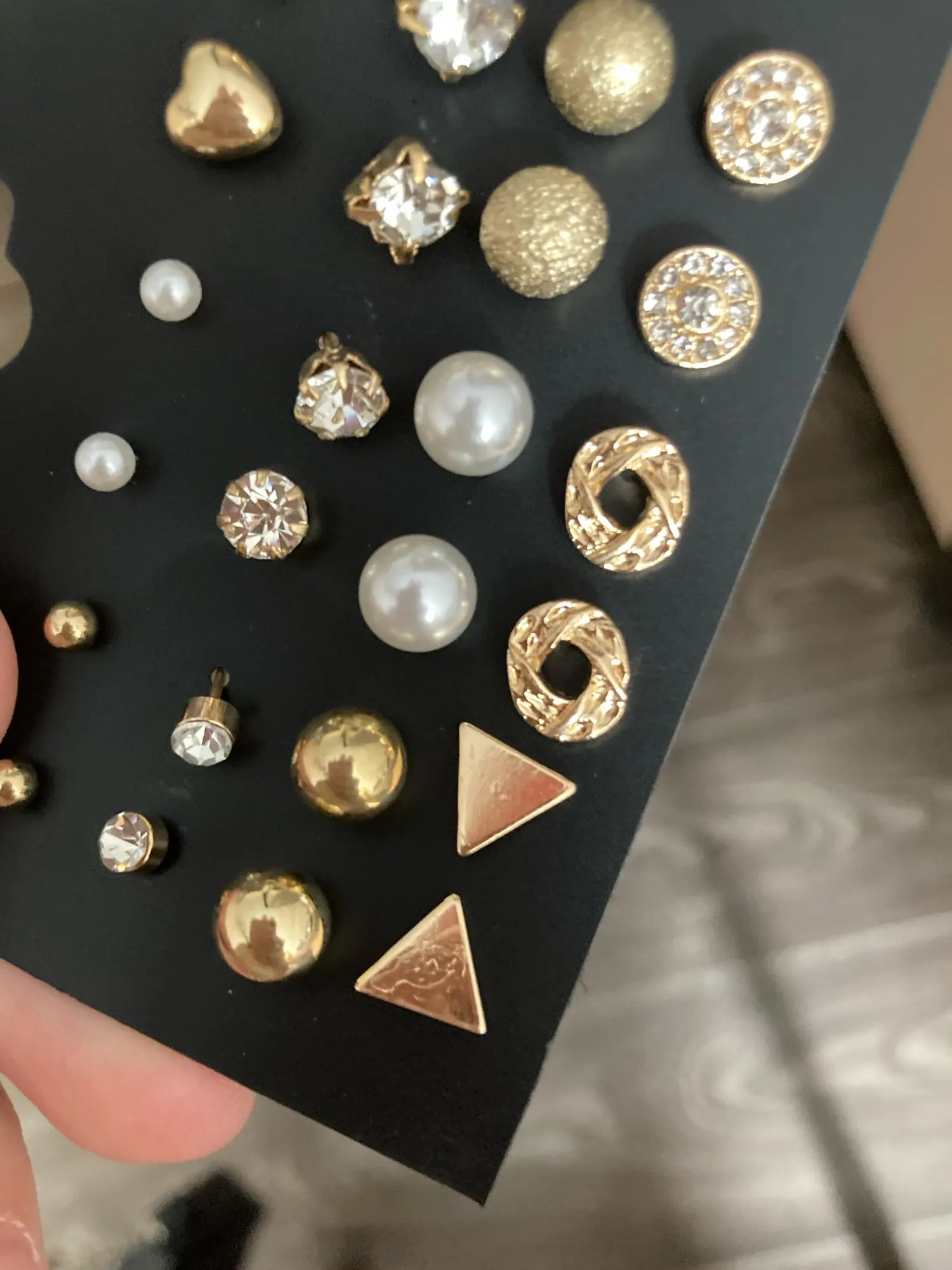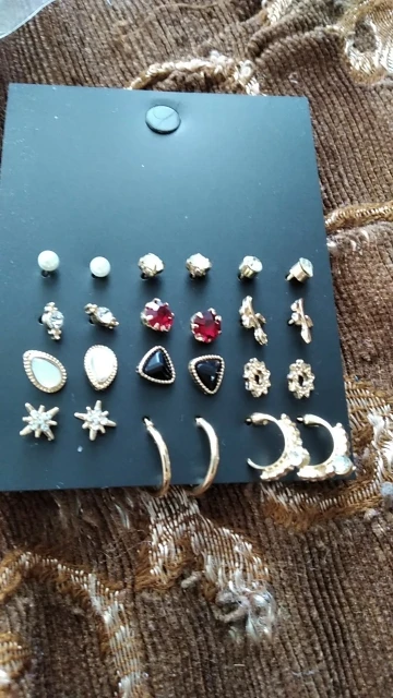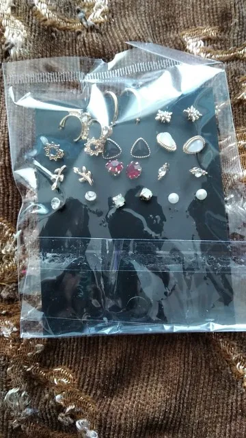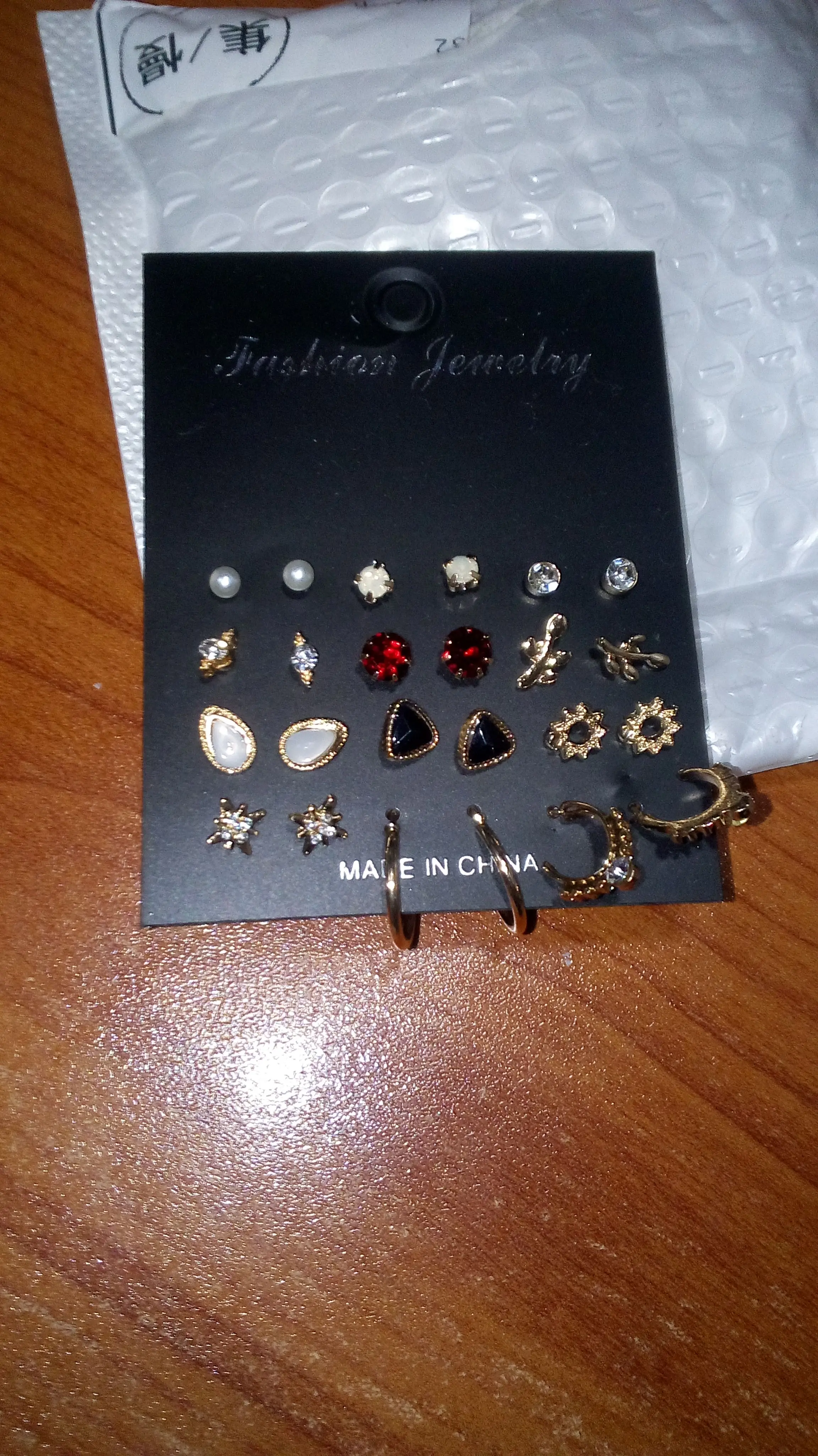 Ооо наконец-то пришли мои побрякушки! У продавца заказывали серги (3) и цепочки (3), пришло всё одной посылкой. Заказывала 11.11 пришло 9.12, продавец 5 дней не отправлял заказ, я ему написала и всё норм, возможно из-за того, что много всего набрала. Изначально фоток и отзывов у продовца небыло, но нашла у магазина купон тип покупаешь на 600р, а платишь 300, вот и набрала. Так описание: 1. Серёжек 5 шт, не ломаные, розовве висюльки классные, коричневые вообще огонь. 2. Серёжек 6 шт, тоже целые. Висячие золотые две пары очень приятные даже на ощюпь, если присмотреться, то это маленькие звёздочки. 3. Серёжк 6 шт, на одной круглой совсем чуток из-за перевозки погнулся штырёк, но метал довольно мягкий всё ок. На больших кольцах и на кольцах без бусин удобный защёлкивающийся замочек. В итоге хочу сказать что, заказом жутко давольна. Всё так же как на промо. Теперь придется это всё носить! Ещё отзыв оставила и на цепочки у этого же продовца. (Фотки конечно так себе, фронталка у меня тупая)