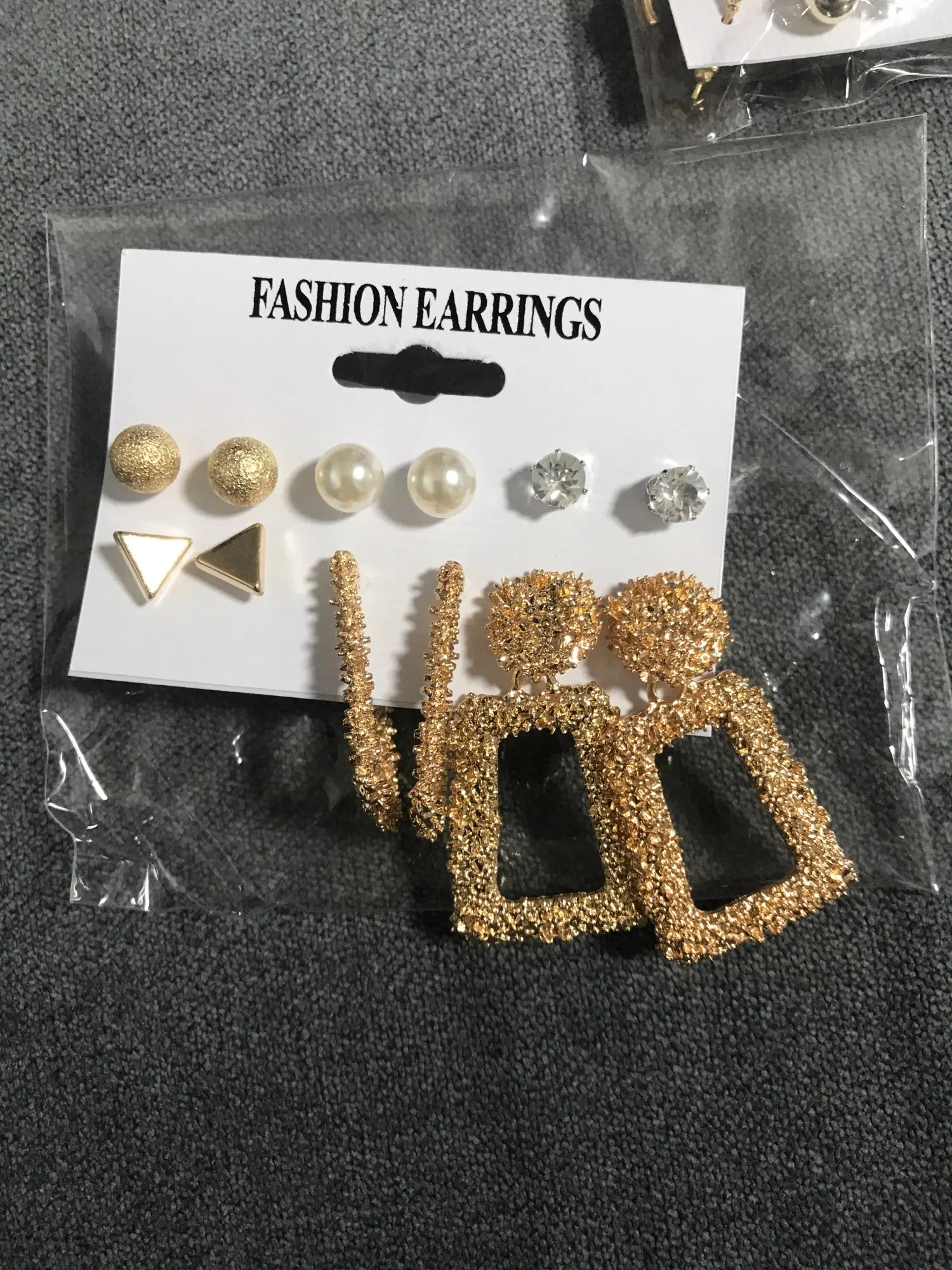 Набор женских круглых серег VKME, винтажные золотистые серьги с жемчугом, квадратные серьги с вырезами, подарочные украшения