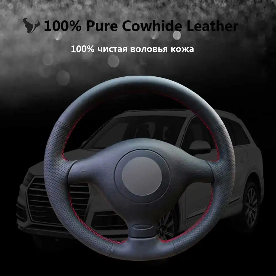 Черный чехол на руль из натуральной кожи для volkswagen vw golf 4 passat b5 1996-2003 seat leon 1999-2004 polo 1999-2002