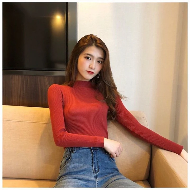 2020 Новое поступление осень зима водолазка пуловеры свитера Рубашка первоклассника длинный рукав короткий корейский облегающий плотный свитер