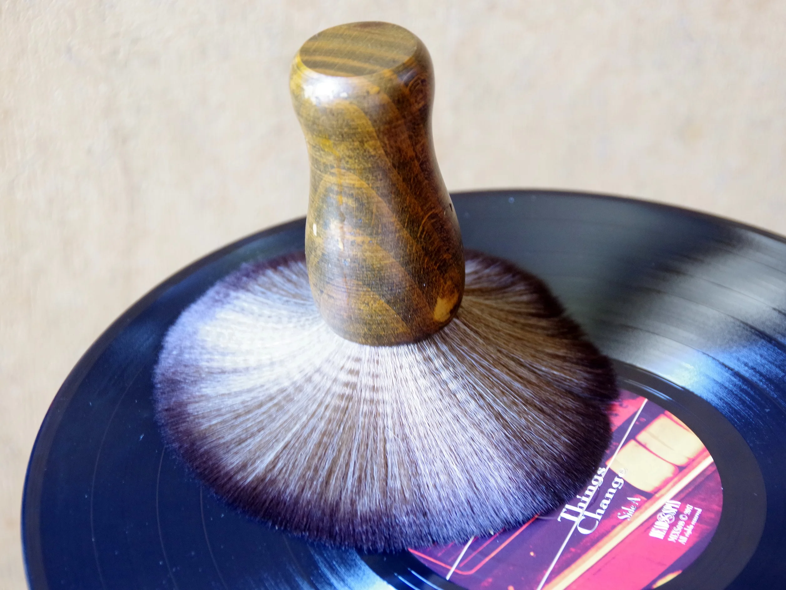 Блестящая гигантская кисть от белки-белки! Гигантский, потому что при давлении на поверхность пластины, волосы покрывают весь радиус! Ручка изготовлена из натурального дерева. Кисть действительно идеальна. Он собирает даже самую маленькую пыльцу из лозы. Кроме того, он не заряжает пластины электростатически, и даже у меня сложилось впечатление, что он снимает некоторые расходы с пластины, Потому что она прилипает меньше к фольге. Он также не размазывает пыль, как и другие, которые у меня были раньше.