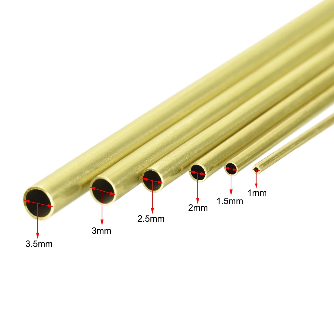 Uxcell 6 шт. латунная трубка 1 мм 1,5 мм 2 мм 2,5 мм 3 мм 3,5 мм OD X 0,2 мм толщина стенки 300 мм Длина бесшовная круглая труба трубки