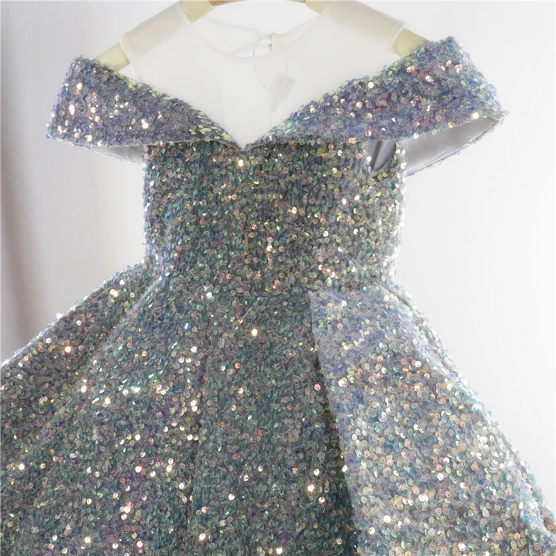 Платье детское для первого причастия, Бальное, с цветами и блестками, для выступлений на пианино, свадьбы