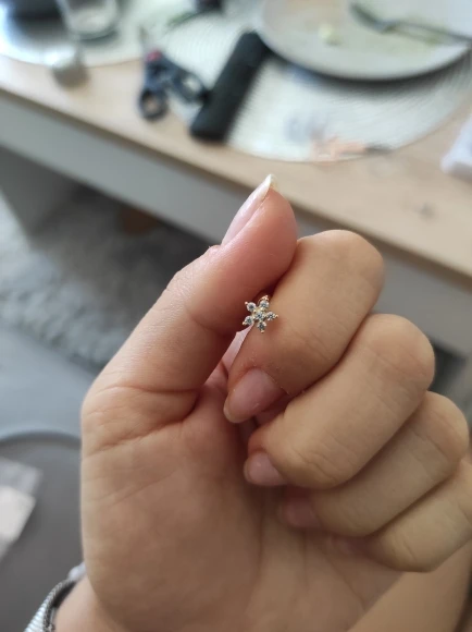 серёжка для пирсинга в носу не подходит, слишком большая как по мне, но любителям огромной херни на пол носа - пожалуйста. открыла спор, мне отказали