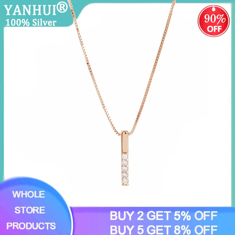 YANHUI модный розовый Золотой геометрический 14 мм длинный кулон и ожерелье серебро 925 ювелирные изделия тонкий подарок для женщин девушек DN019
