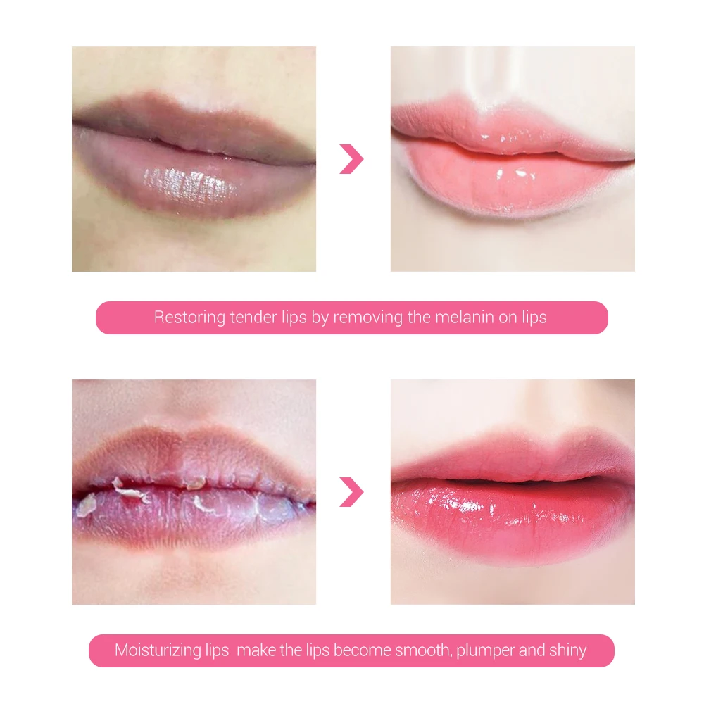 Эффекты: уменьшение пигментации губ; Увлажняющий слой на поверхности губ, блокирует влагу, делает губы гладкими, блестящими и блестящими, придаст вам розовые губы.