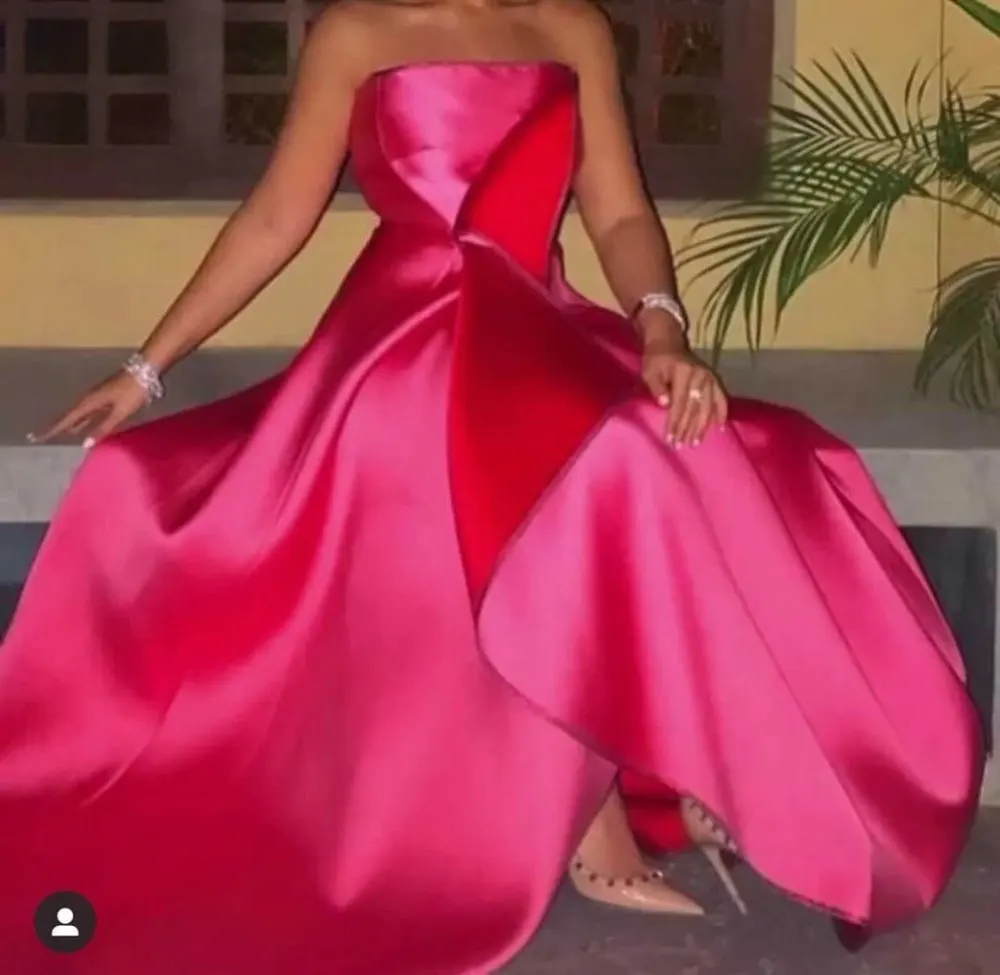 Сексуальная фуксия без бретелек платья выпускного вечера атласные Р...