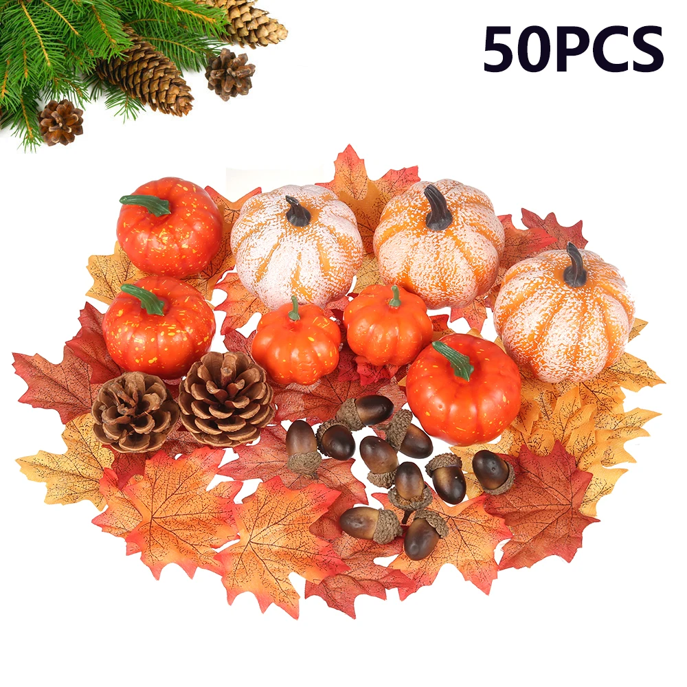 50 шт. осенние Оранжевые тыквы кленовые листья hristmas украшения Гирлянда День благодарения окна ресторана дома кленовые листья украшения