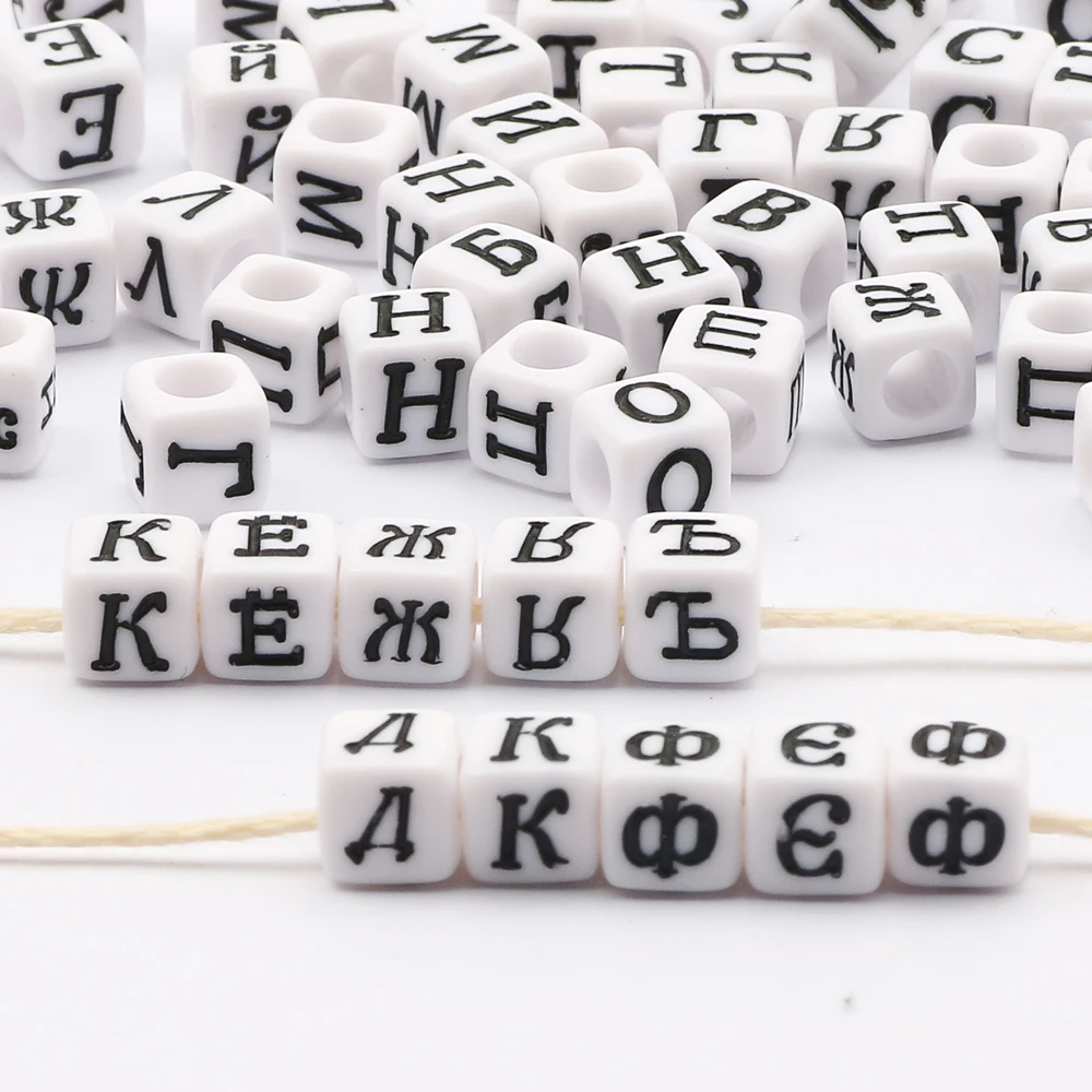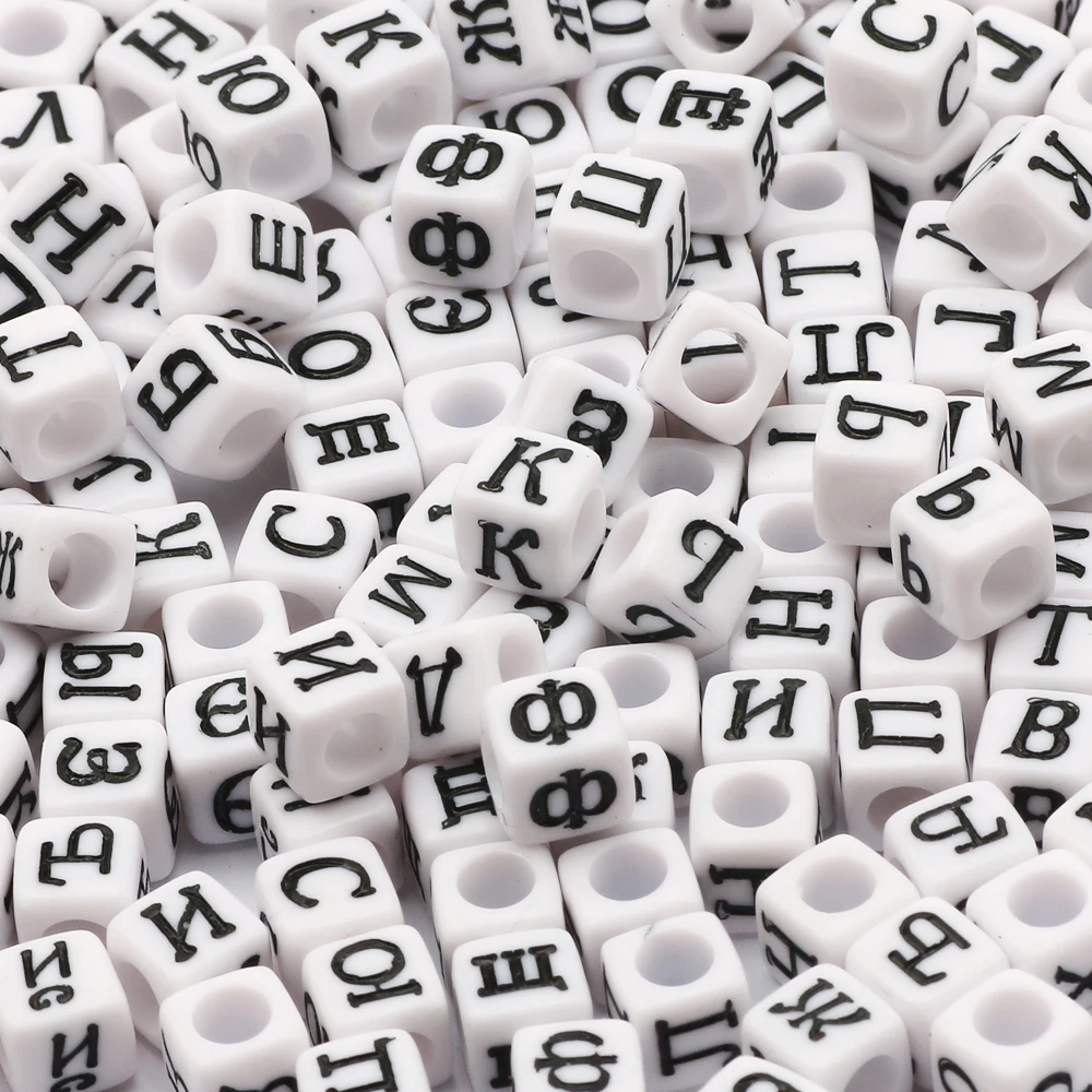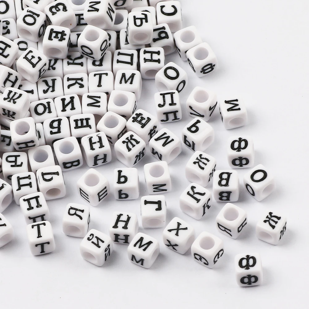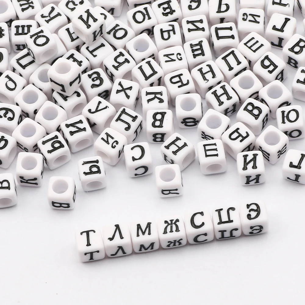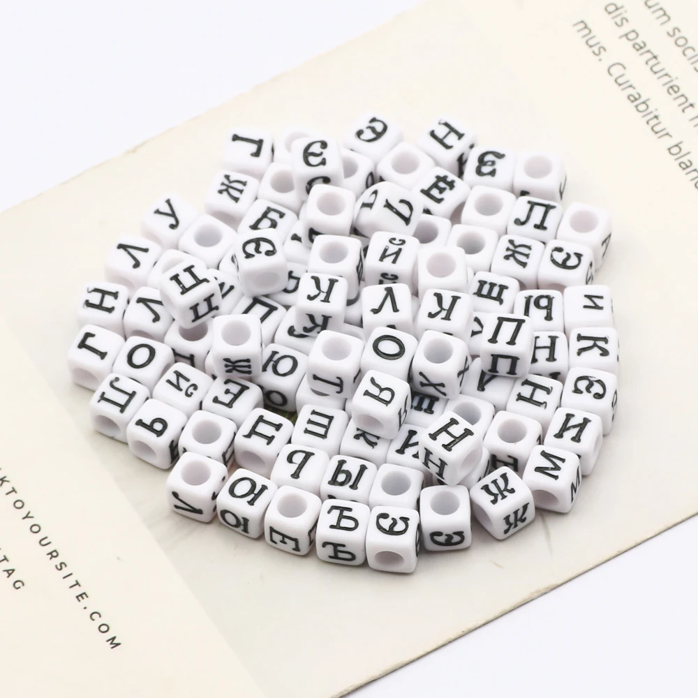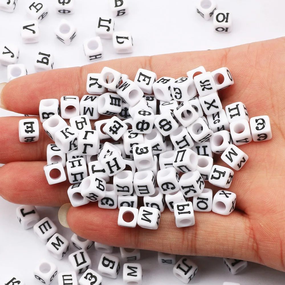 Бусины с отверстием россыпью для изящных браслетов, ожерелий, ювелирных изделий сделай сам, Квадратные бусины с русскими буквами, 6 х6 мм, 100-500 штук