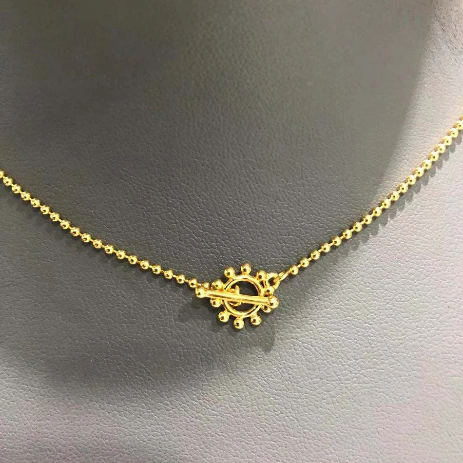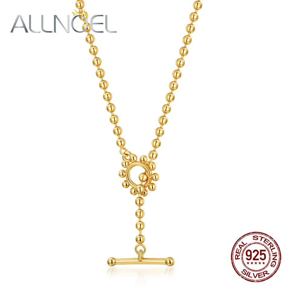 Женское Ожерелье ALLNOEL Vogue, позолоченное ожерелье из стерлингового серебра 925 пробы с круглой пряжкой, ожерелье из шариков длиной 450 мм