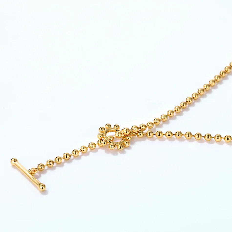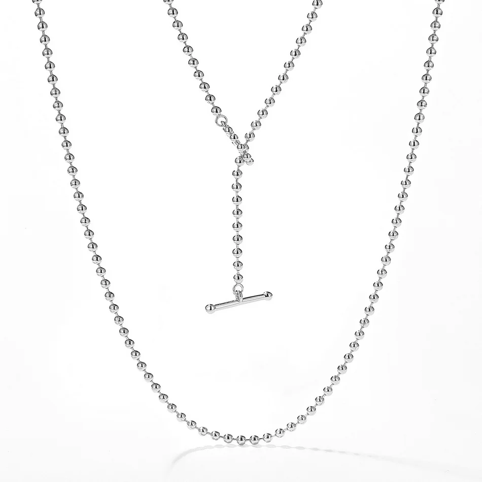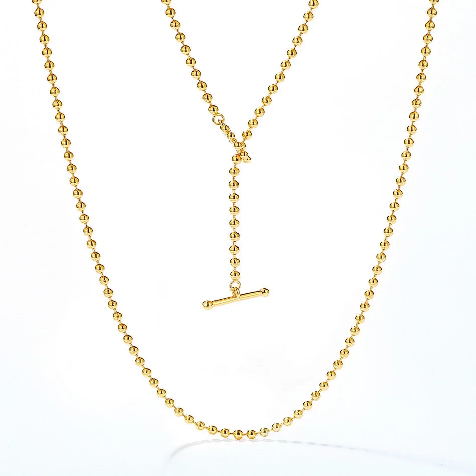 ALLNOEL Vogue позолоченное ожерелье лариат из серебра 925 пробы для женщин, регулируемое колье с о-образной пряжкой, ожерелье с шариковой цепочкой длиной 450 мм