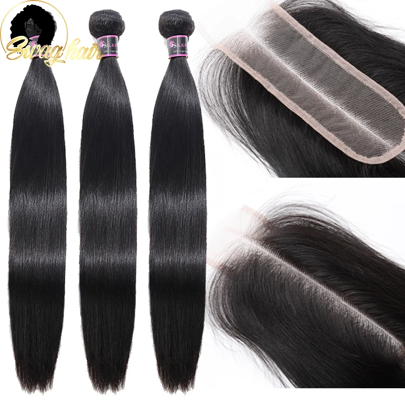 Пряди прямых волос Swag Perviuan с застежкой 2x6, человеческие волосы с застежкой двойной вытяжки, 4 пряди с застежкой