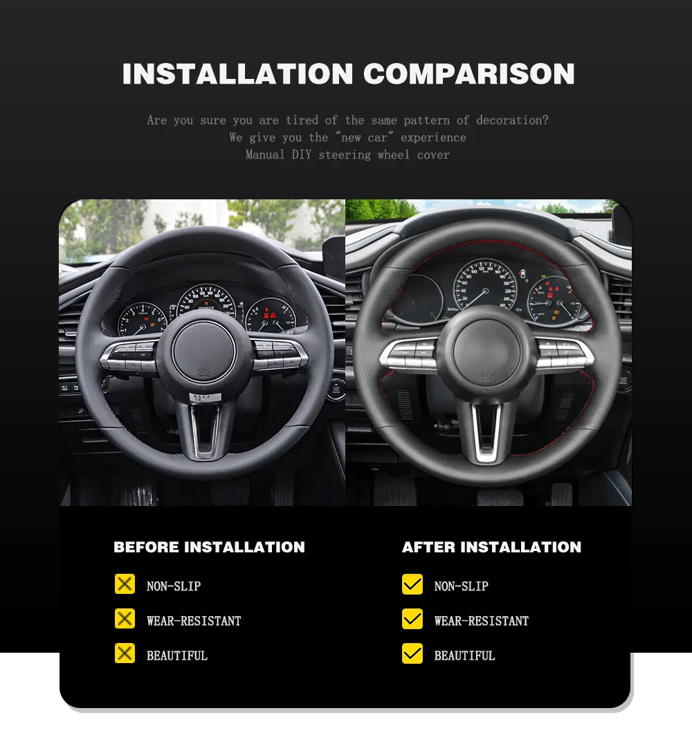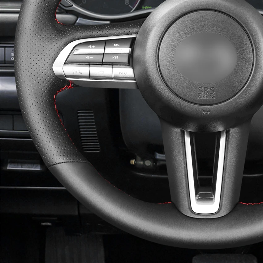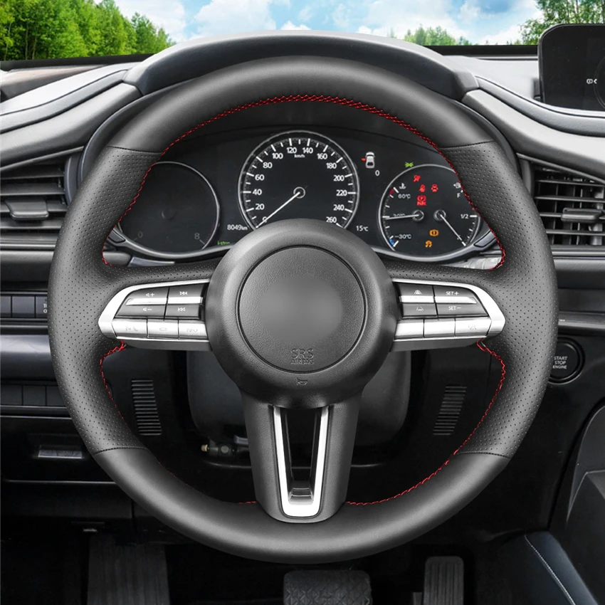 Ручное шитье LQTENLEO из натуральной кожи черного цвета для Mazda 3 Axela чехол рулевого колеса автомобиля 2019 2020 CX-30 2020 MX-30 2020