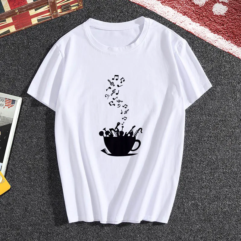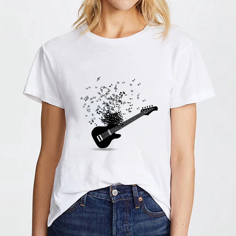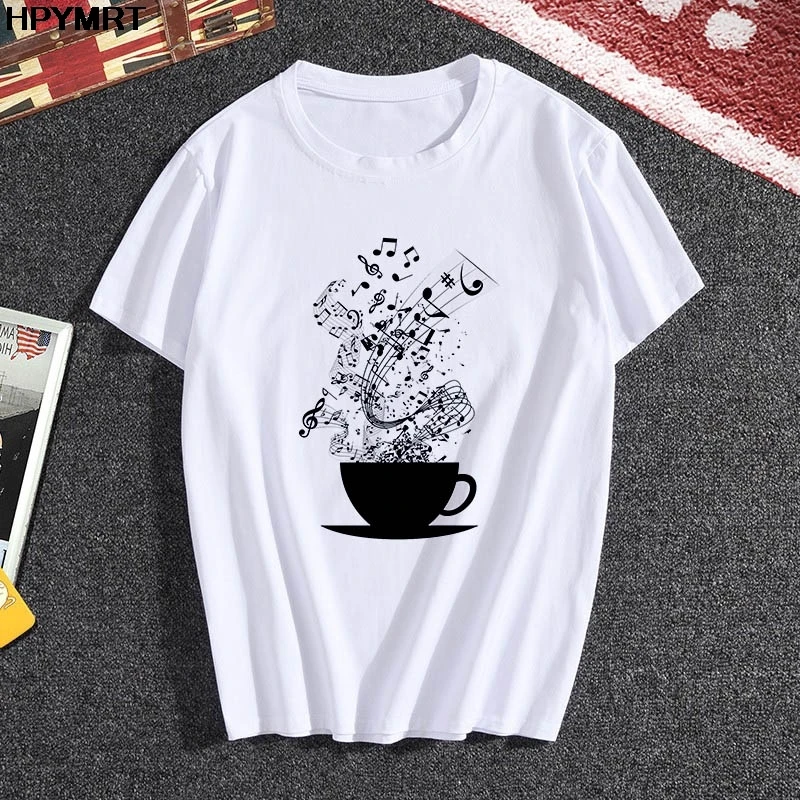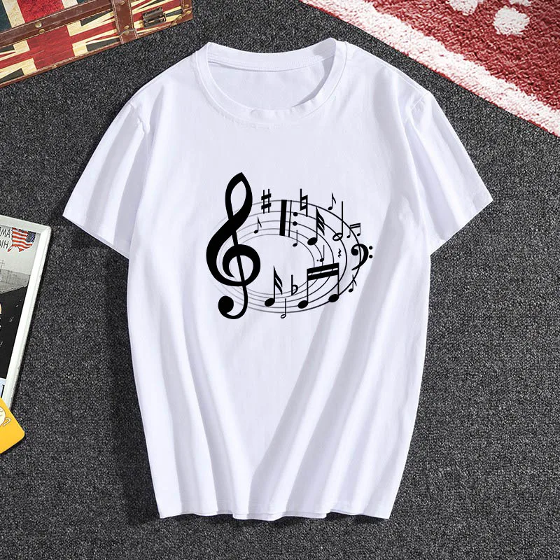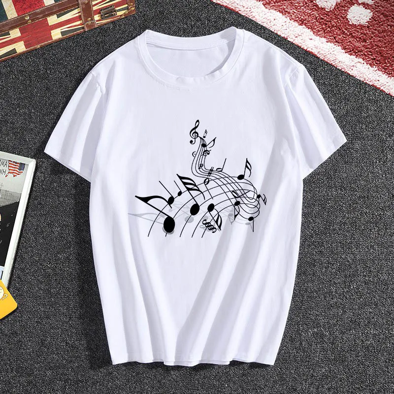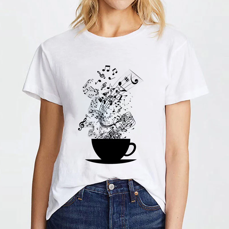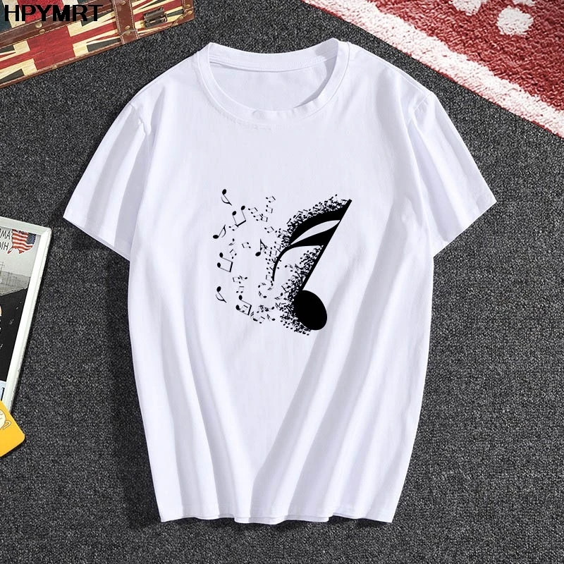 Женская белая футболка, модная креативная футболка с принтом музыкальных нот, летняя повседневная футболка, белая одежда с круглым вырезом в стиле Харадзюку, топы, футболка