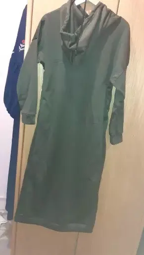 Действительно приятно! Я 5'3 и длина платья остановилась на верхней части моей ноги, так рад, что мне не нужно менять длину. Удобный теплый материал. Быстрая доставка! Я получил его сразу, через две недели, в Калифорнию. Зеленый цвет немного отличается от изображения, но мне все еще нравится! Доволен этой покупкой.